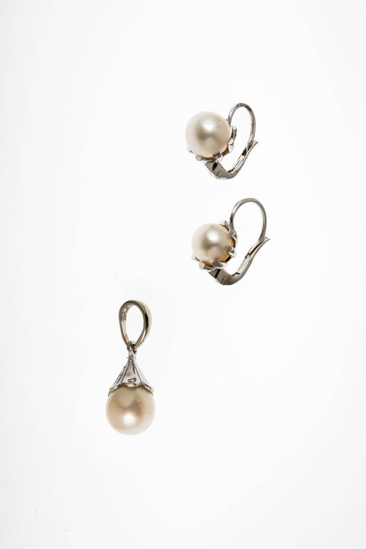 -ciondolo in oro bianco con perla giapponese del diam. di mm 8,4 ca. Peso gr 2,1