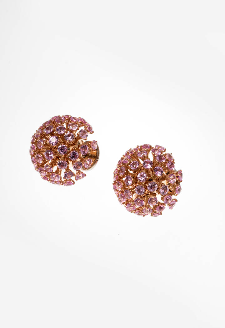 in oro rosa, a forma di soffioni, con zaffiri rosa taglio rotondo per totali ct 4,88 ca