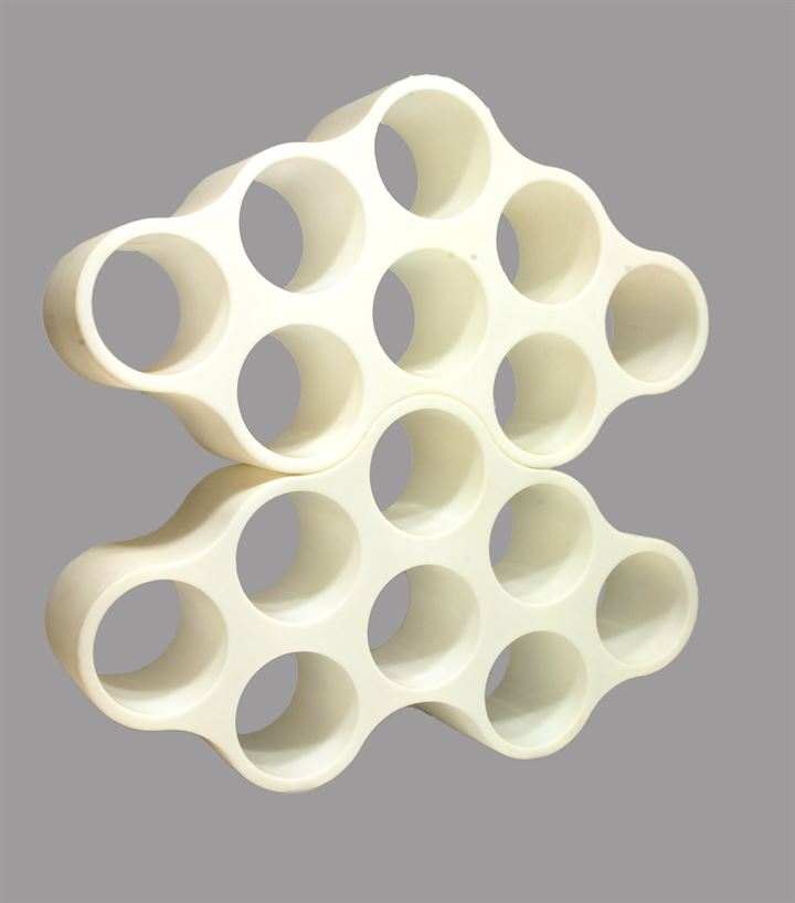 Coppia di librerie bifacciali in polietilene bianco con vani passanti realizzate con tecnica rotazionale.