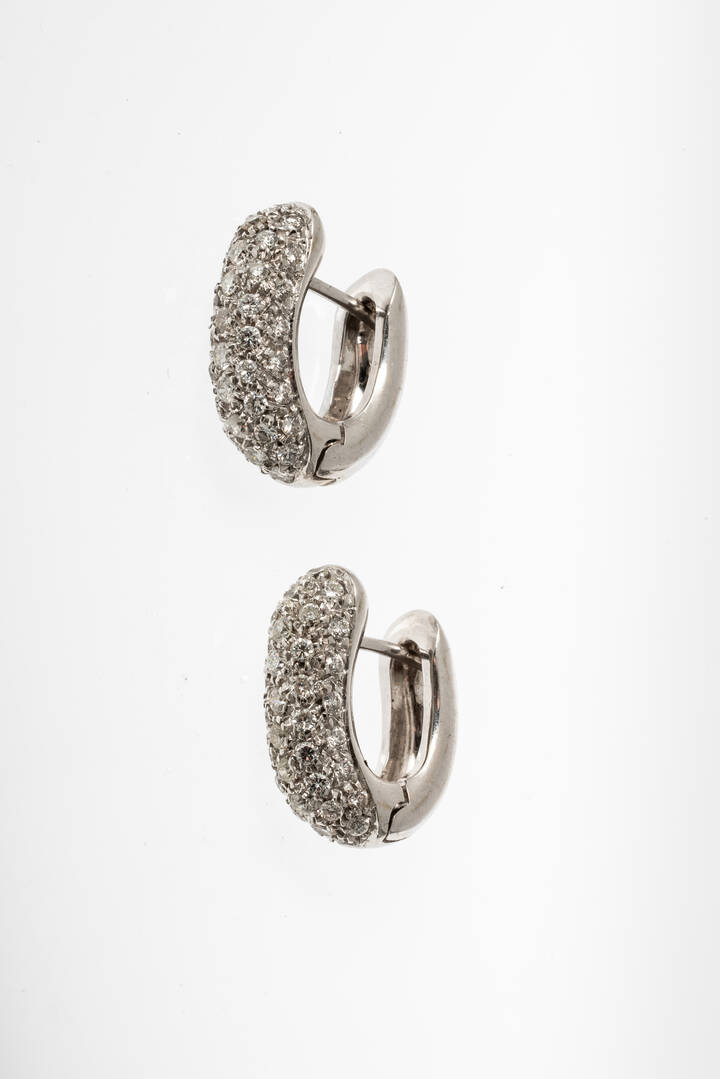 in oro bianco, a cerchio ovalizzato, parte anteriore in pavé di diamanti taglio brillante per totali ct 1,08 ca, probabile G-H, purezza IF-VVS