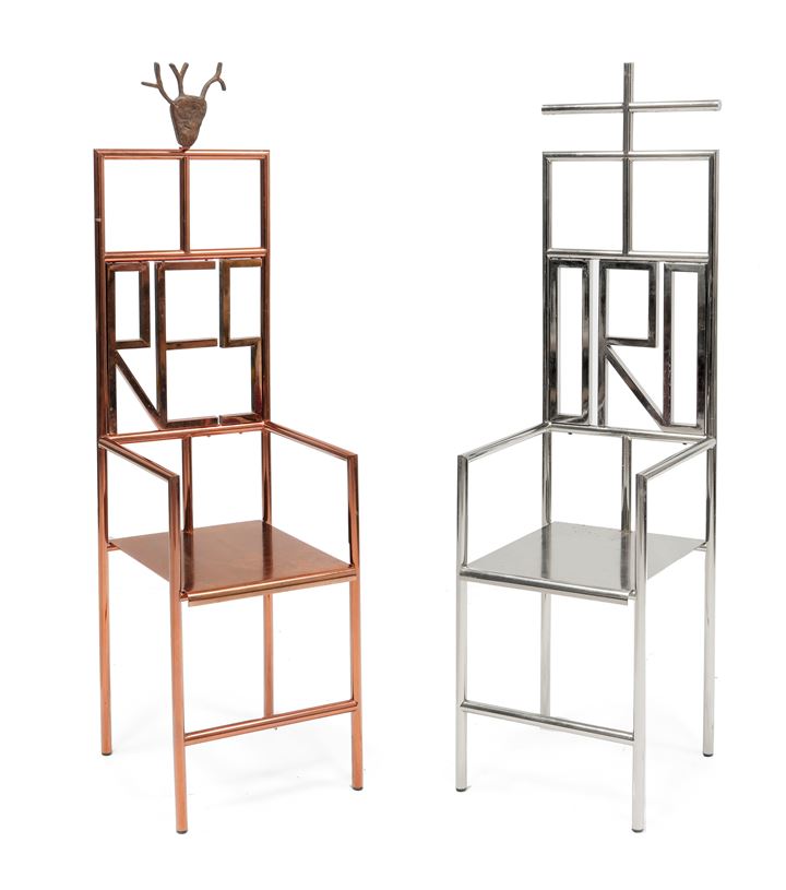 PALADINO MIMMO Paduli (BN) 1948 Res e Oro Coppia di sedie in acciaio cromato...