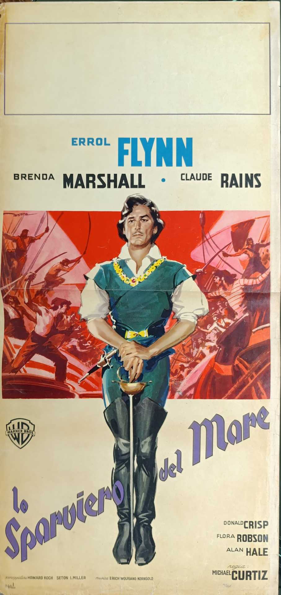 Lo sparviero del mare, 1956 h cm 33X70 Errol Flynn, locandina originale Errol Flynn, locandina originale
