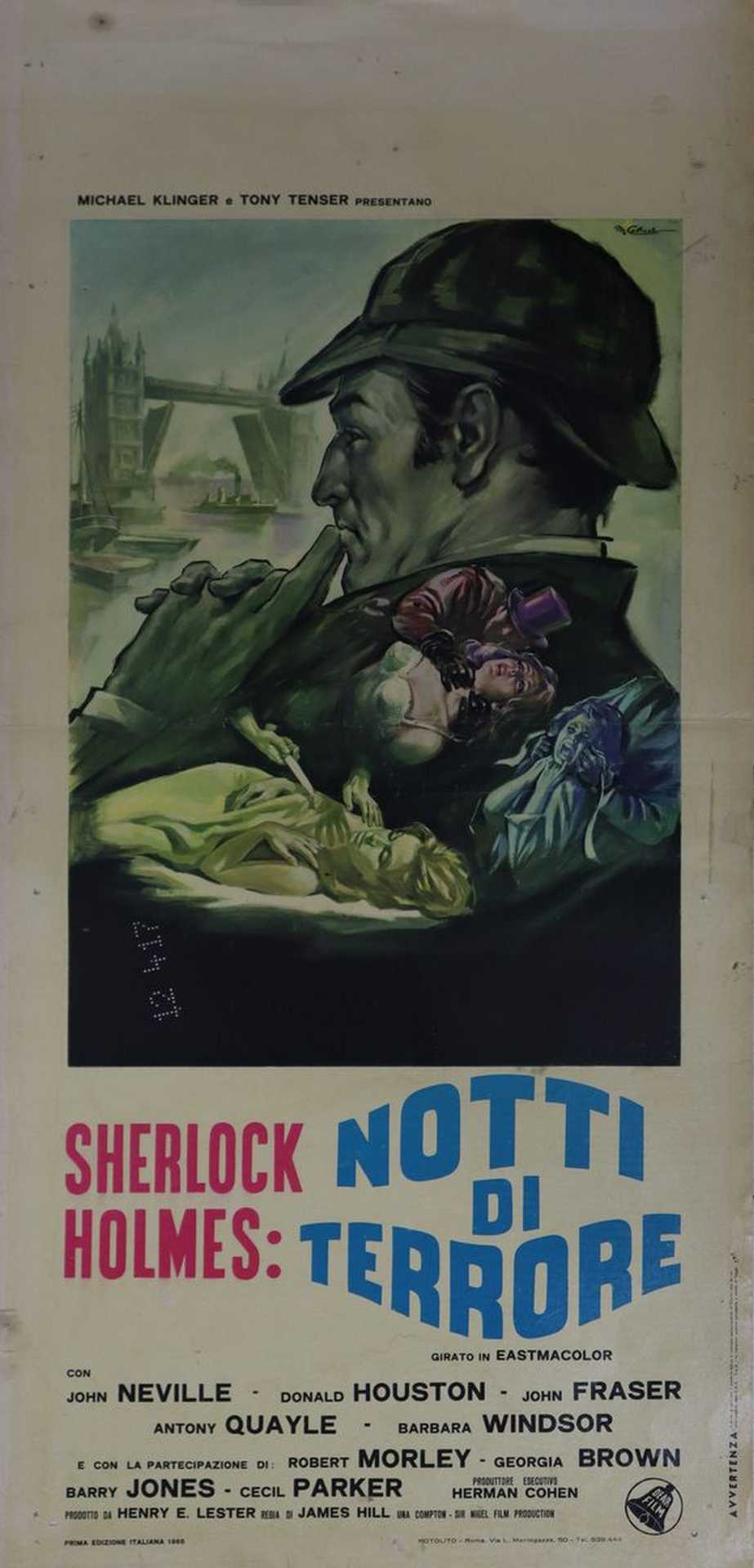Locandina cinema ''Sherlock Holmes: Notti di terrore'', 1966 cm 70 x cm 33 Prima Edizione Italiana, normali segni d'usoPrima Edizione Italiana, normali segni d'uso