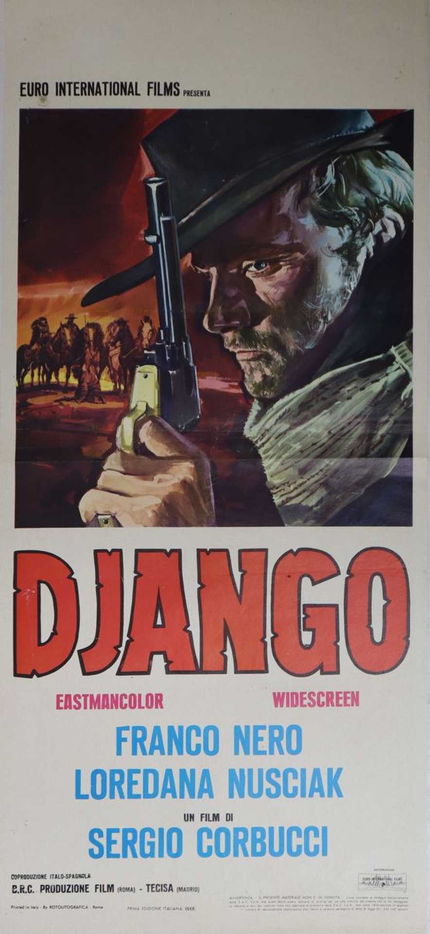 Locandina cinema ''Django'', 1966 cm 70 x cm 33 Prima Edizione Italiana, printed in Italy, datato in basso a sinistra, normali segni d'usoPrima Edizione Italiana, printed in Italy, datato in basso a sinistra, normali segni d'uso