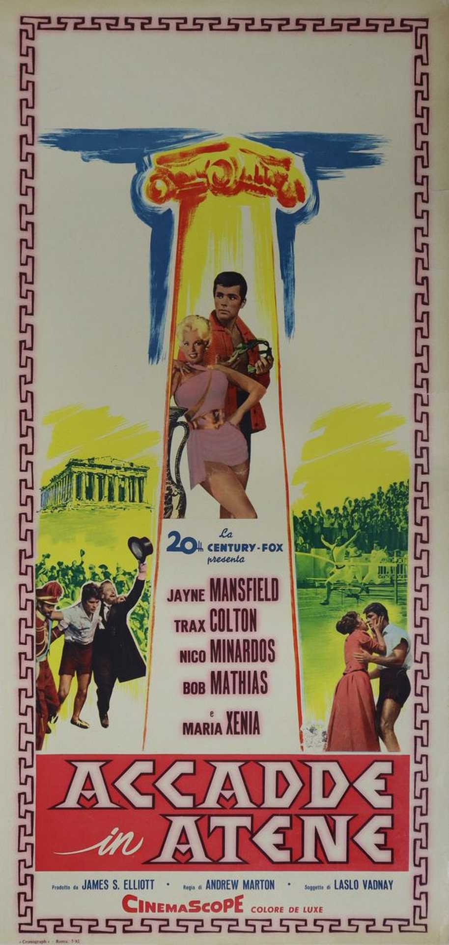 Locandina film ''Accadde in Atene'', 1962 cm 70 x cm 33 Normali segni d'uso, datato in basso a sinistraNormali segni d'uso, datato in basso a sinistra
