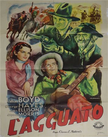 Manifesto cinema due fogli ''L'agguato', 1949 cm 100 x cm 140 Artista Spagnoli, Prima Edizione ItalianaArtista Spagnoli, Prima Edizione Italiana