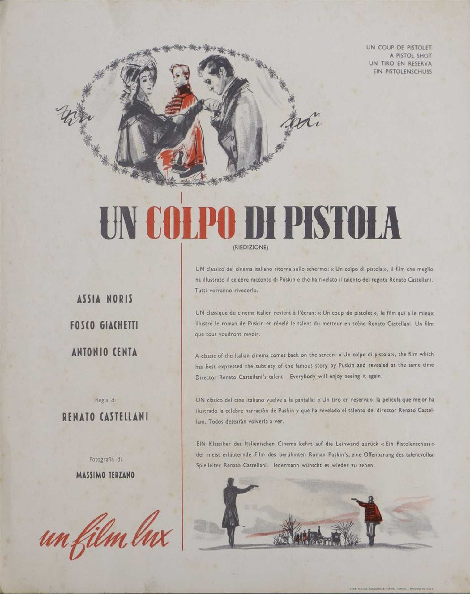 Locandina disegnata ''Un colpo di pistola'', 1950s cm 34 x cm 29 Edizione ItalianaEdizione Italiana