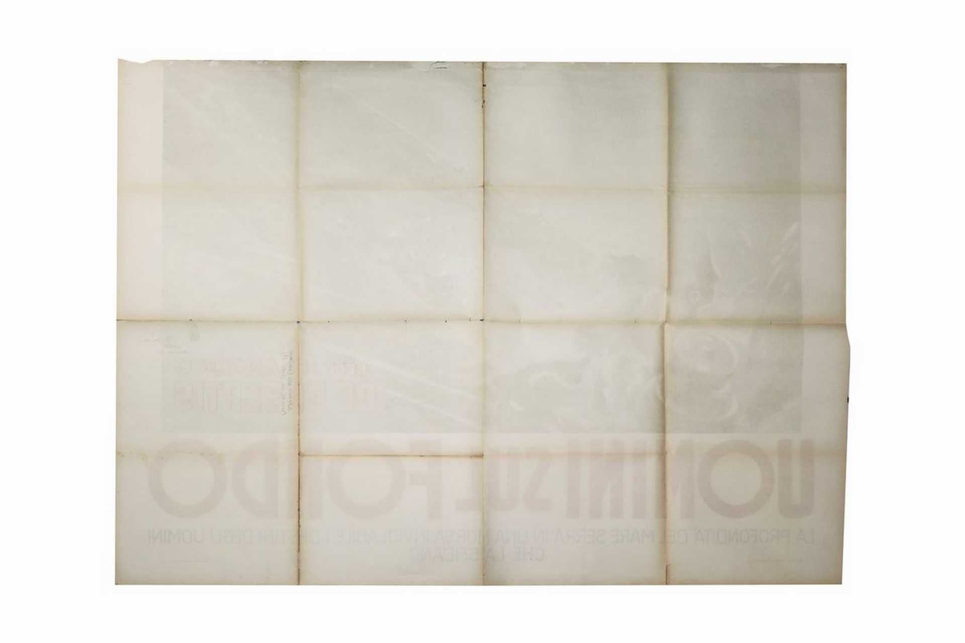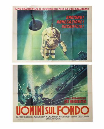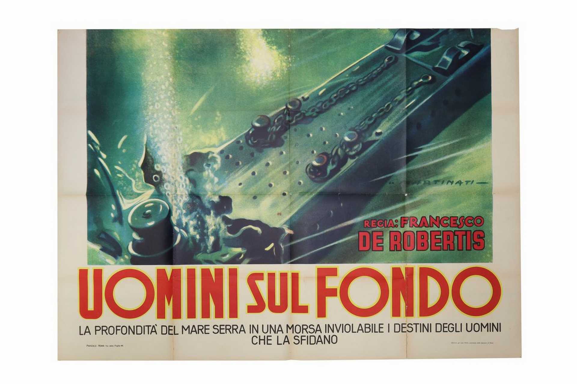 Manifesto ''Uomini sul Fondo'' cm 140 x cm 200 stampa offset Strappi, condizioni C-. Nastro.