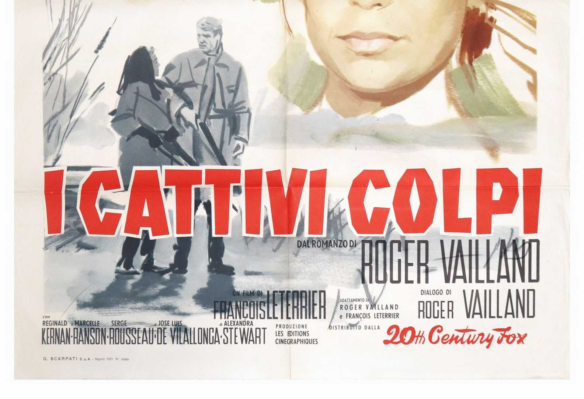 Manifesto cinema due fogli ''I cattivi colpi'', 1961 cm 140x100 Prima edizione, G.Scarpati S.p.a, Napoli. Presenti normali segni d'usoPrima edizione, G.Scarpati S.p.a, Napoli. Presenti normali segni d'uso