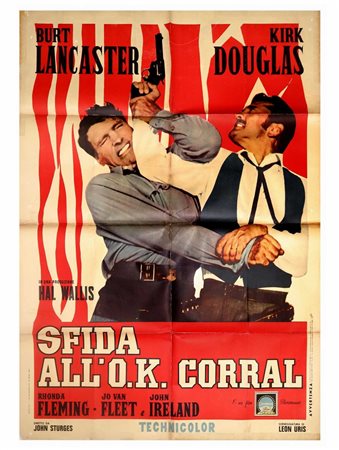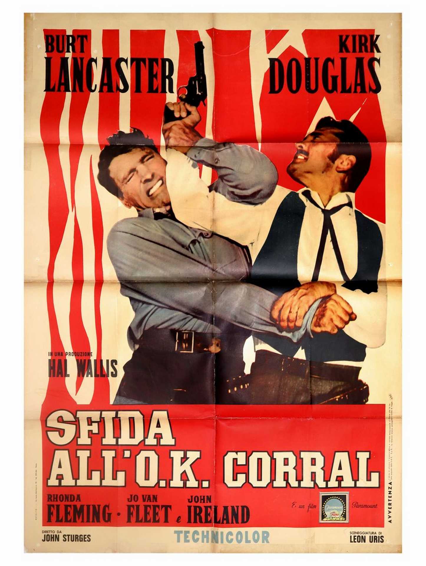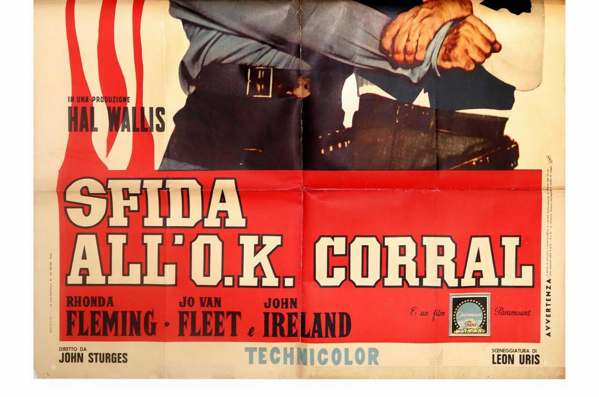 Manifesto cinema due fogli ''Sfida All'0.k. Corral'', 1960 cm 140x100 Rotolito S.r.l, normali segni d'uso, presente nastro adesivo e tracce di umiditàRotolito S.r.l, normali segni d'uso, presente nastro adesivo e tracce di umidità