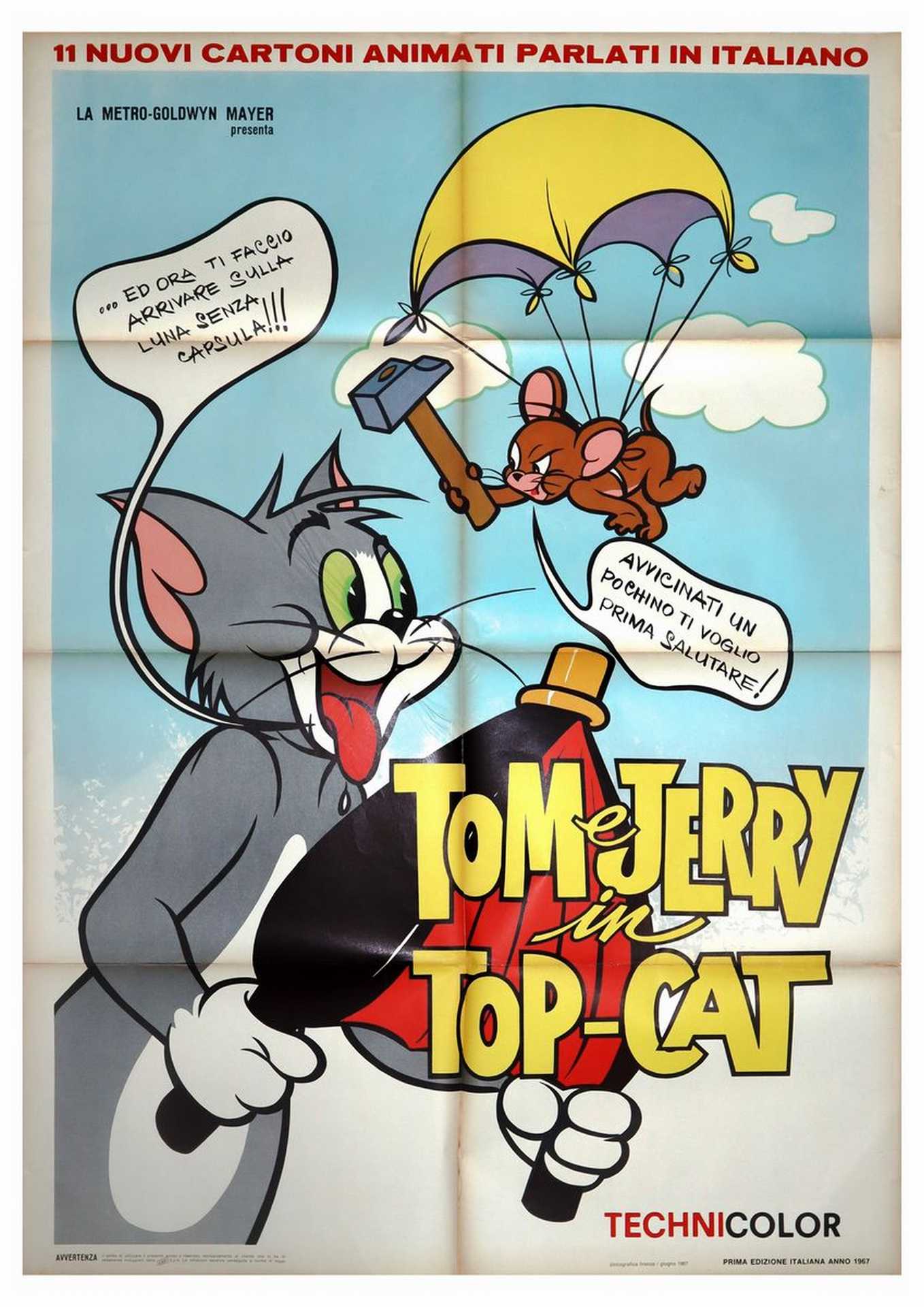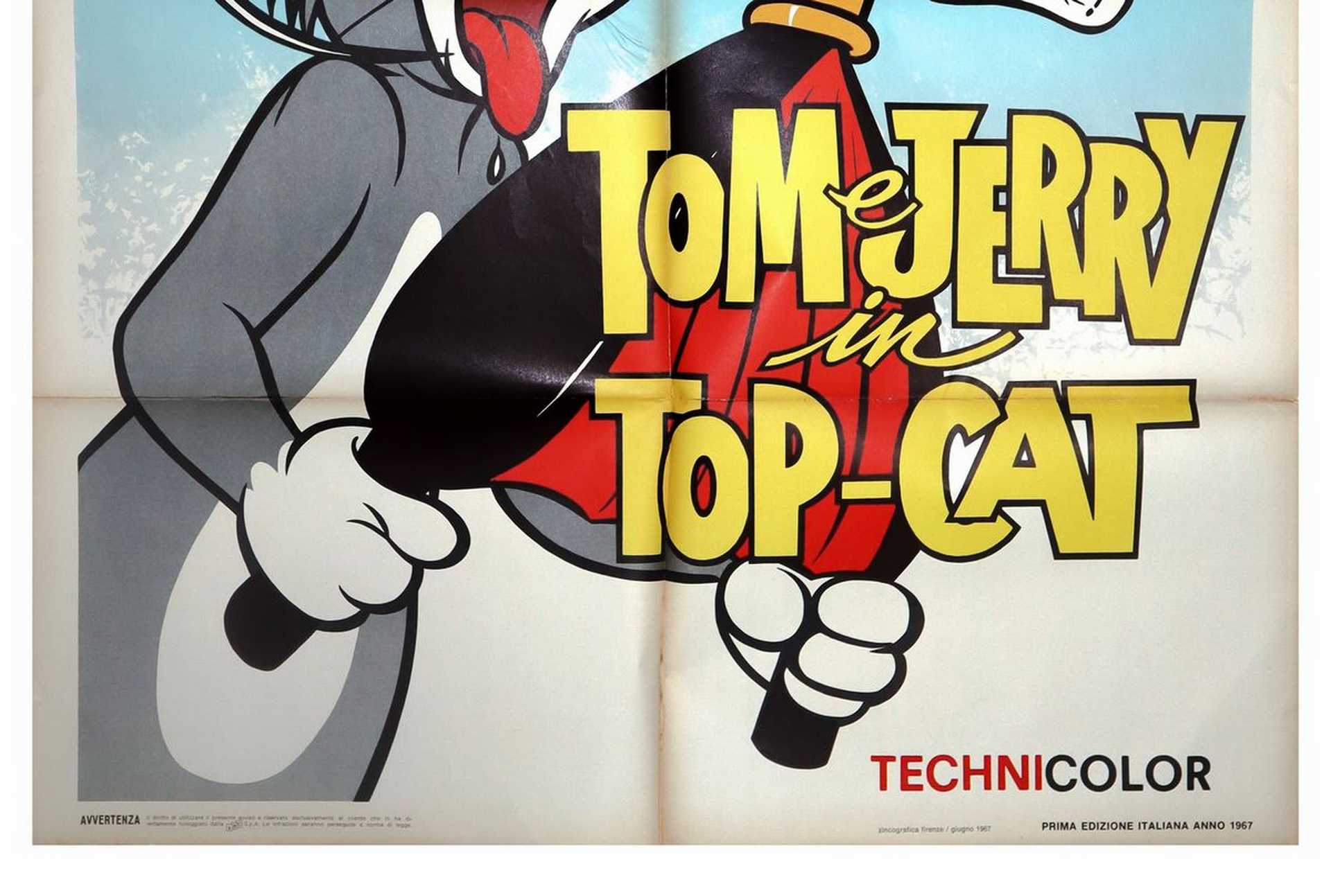 Manifesto cinema due fogli ''Tom e Jerry top cat'', 1967 cm 140x100 Prima edizione Italiana, Zincografica - Firenze, normali segni d'uso, presente nastroPrima edizione Italiana, Zincografica - Firenze, normali segni d'uso, presente nastro