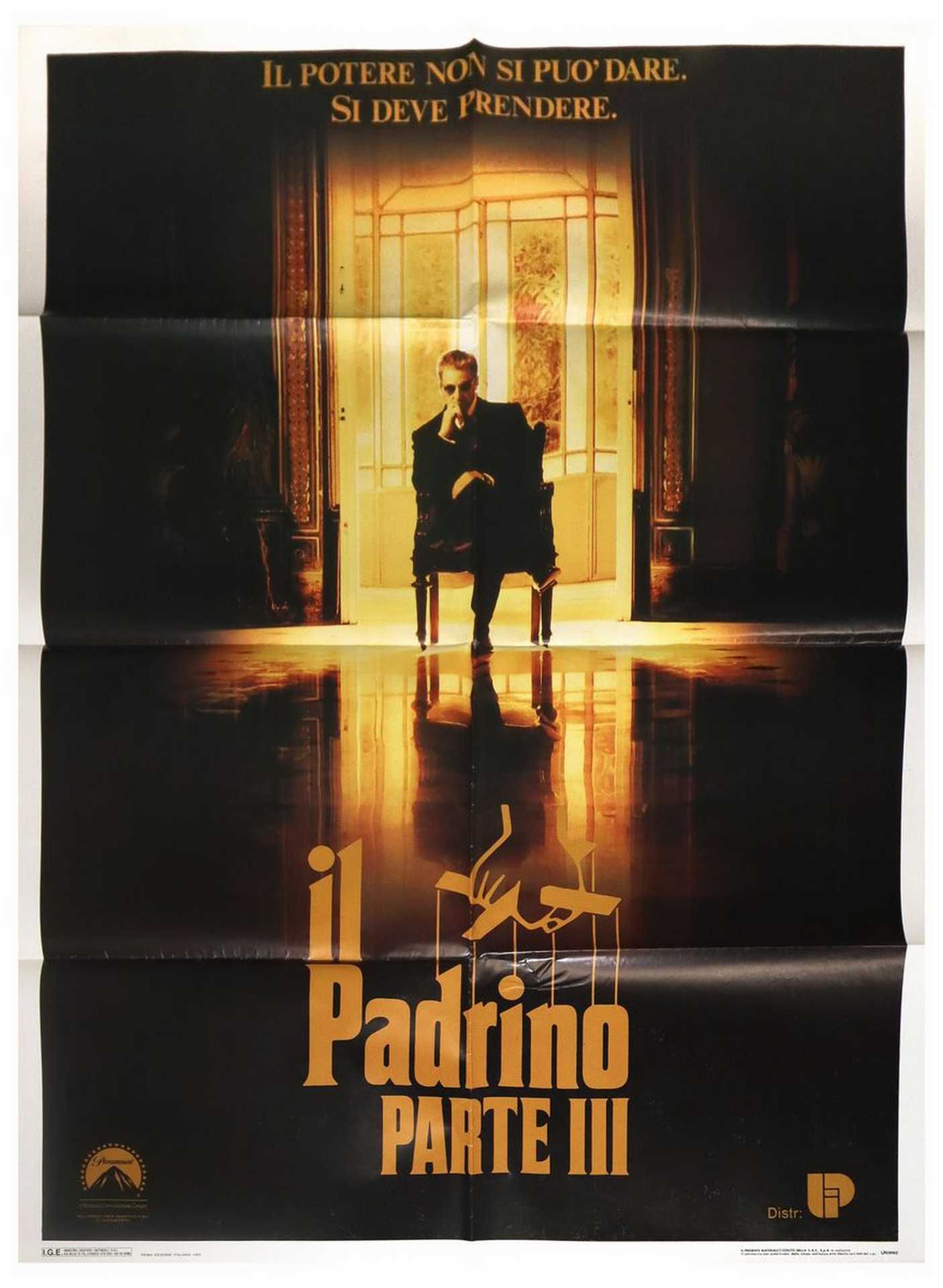 Manifesto cinema due fogli ''Il padrino parte III'', 1991 cm 140x100 Prima edizione italiana, normali segni d'usoPrima edizione italiana, normali segni d'uso