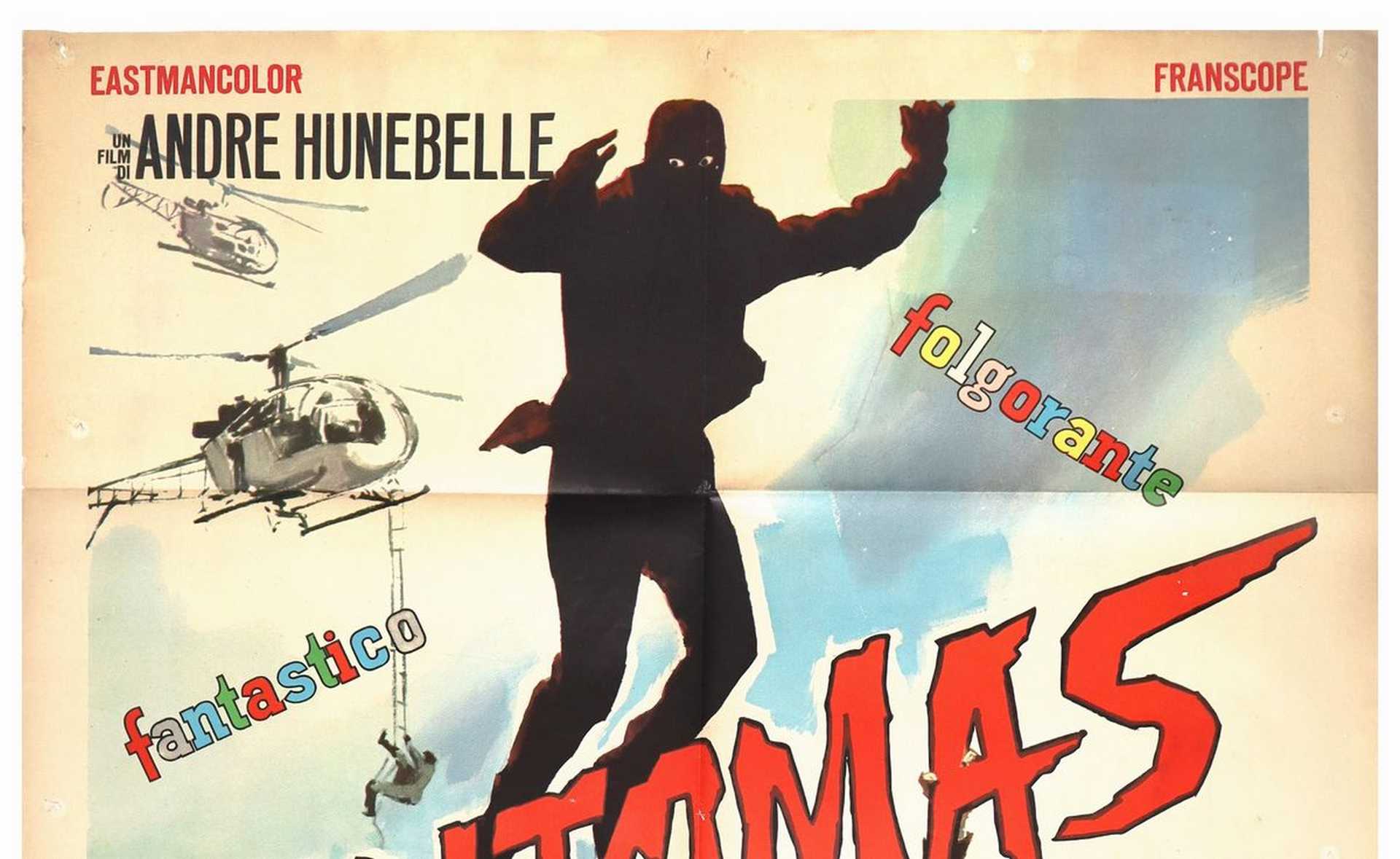 Manifesto cinema due fogli ''Fantomas 70'' cm 140x100 Printed in Italy by Policrom - Roma, normali segni d'uso, presenti buchi Printed in Italy by Policrom - Roma, normali segni d'uso, presenti buchi