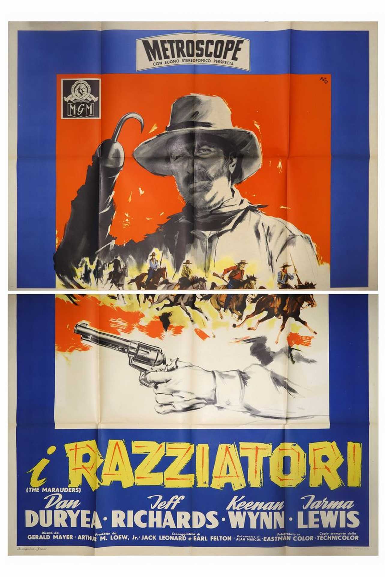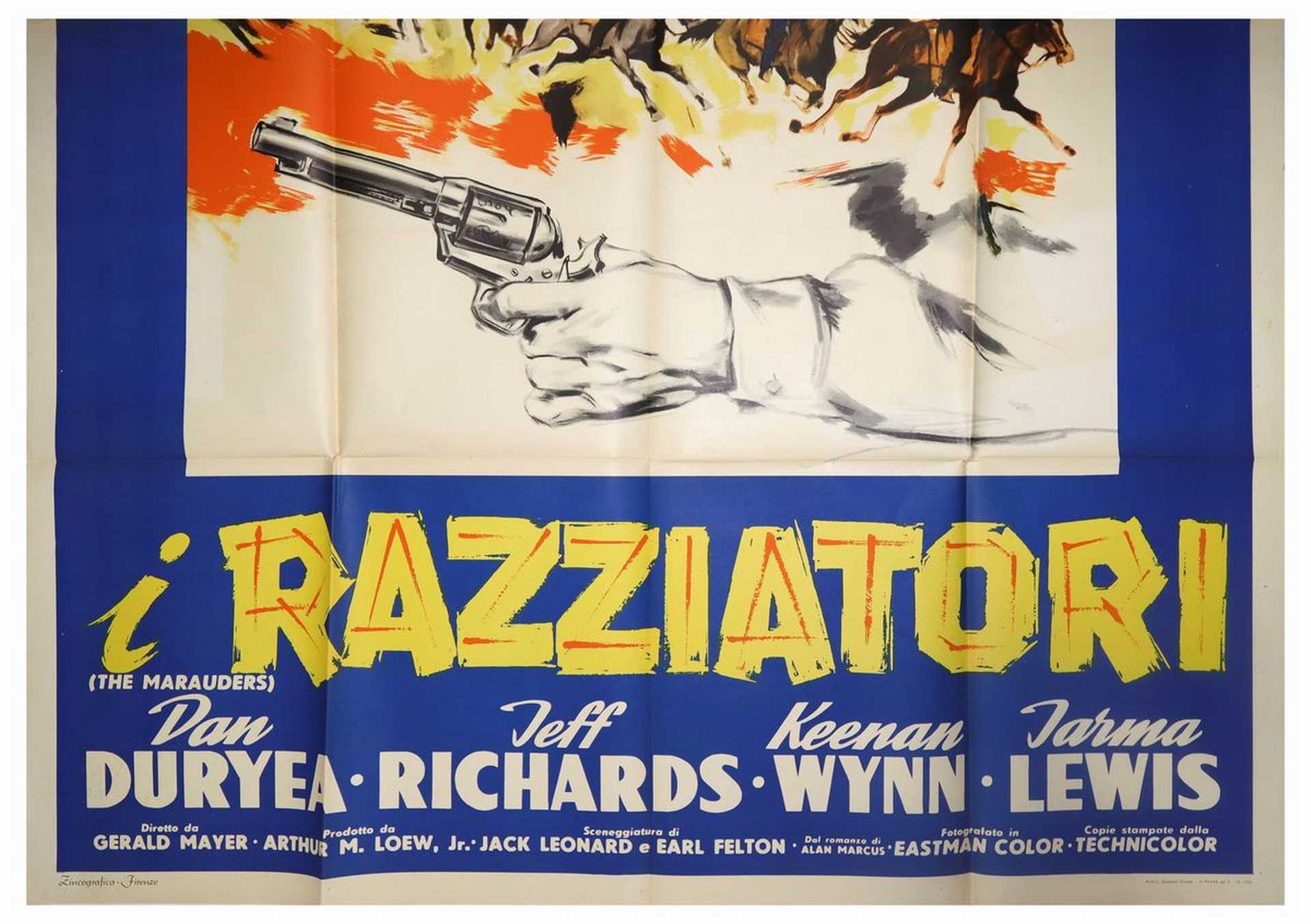 Manifesto cinema quattro fogli ''I Razziatori'', 1955 cm 200x140 Zincografica - Firenze, normali segni d'usoZincografica - Firenze, normali segni d'uso