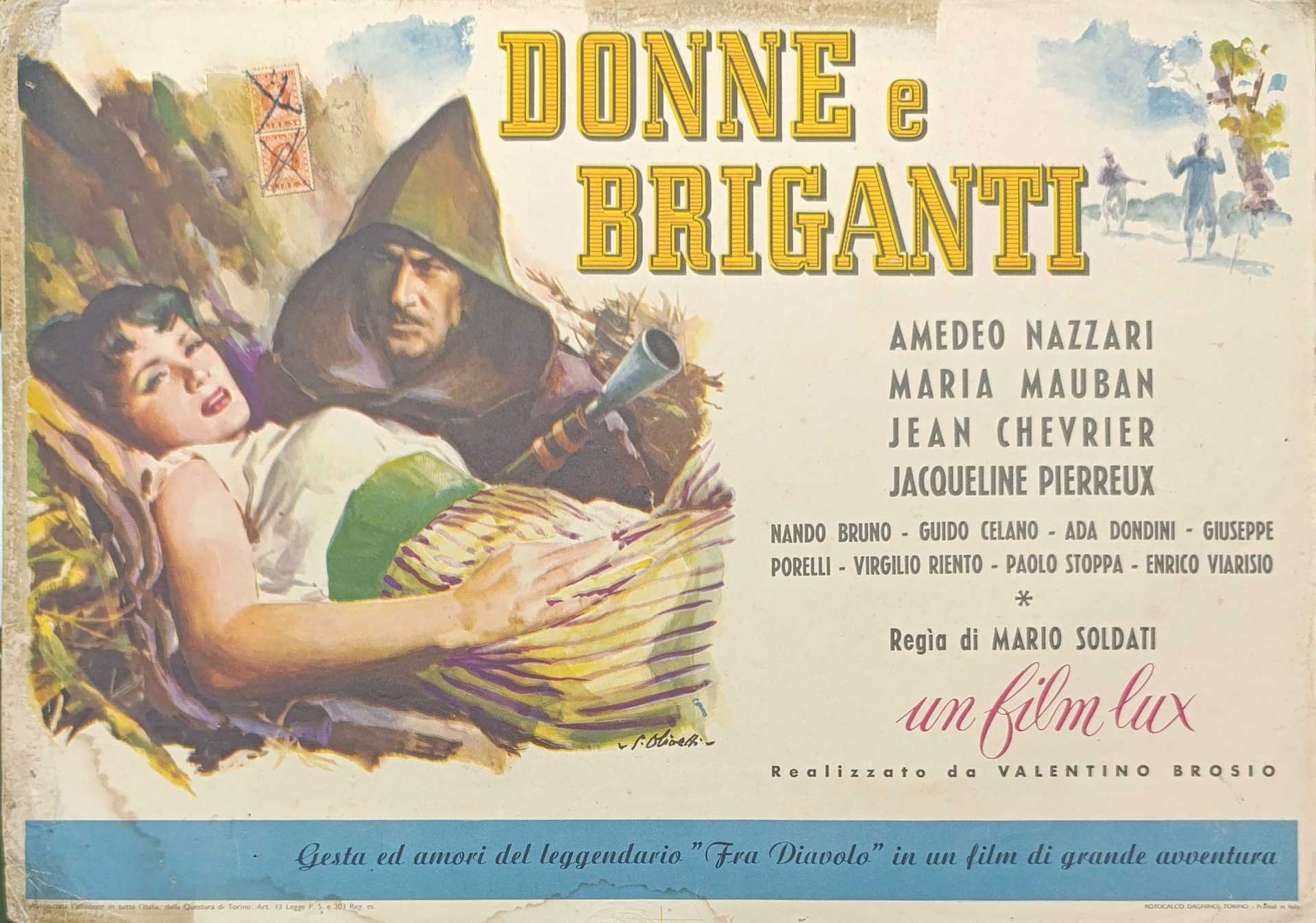Donne e briganti. Rara fotobusta disegnata da Olivetti, 1949 h cm 35X50 Mario Soldati. Amedeo Nazzari. Prima edizione. Buone condizioniMario Soldati. Amedeo Nazzari. Prima edizione. Buone condizioni