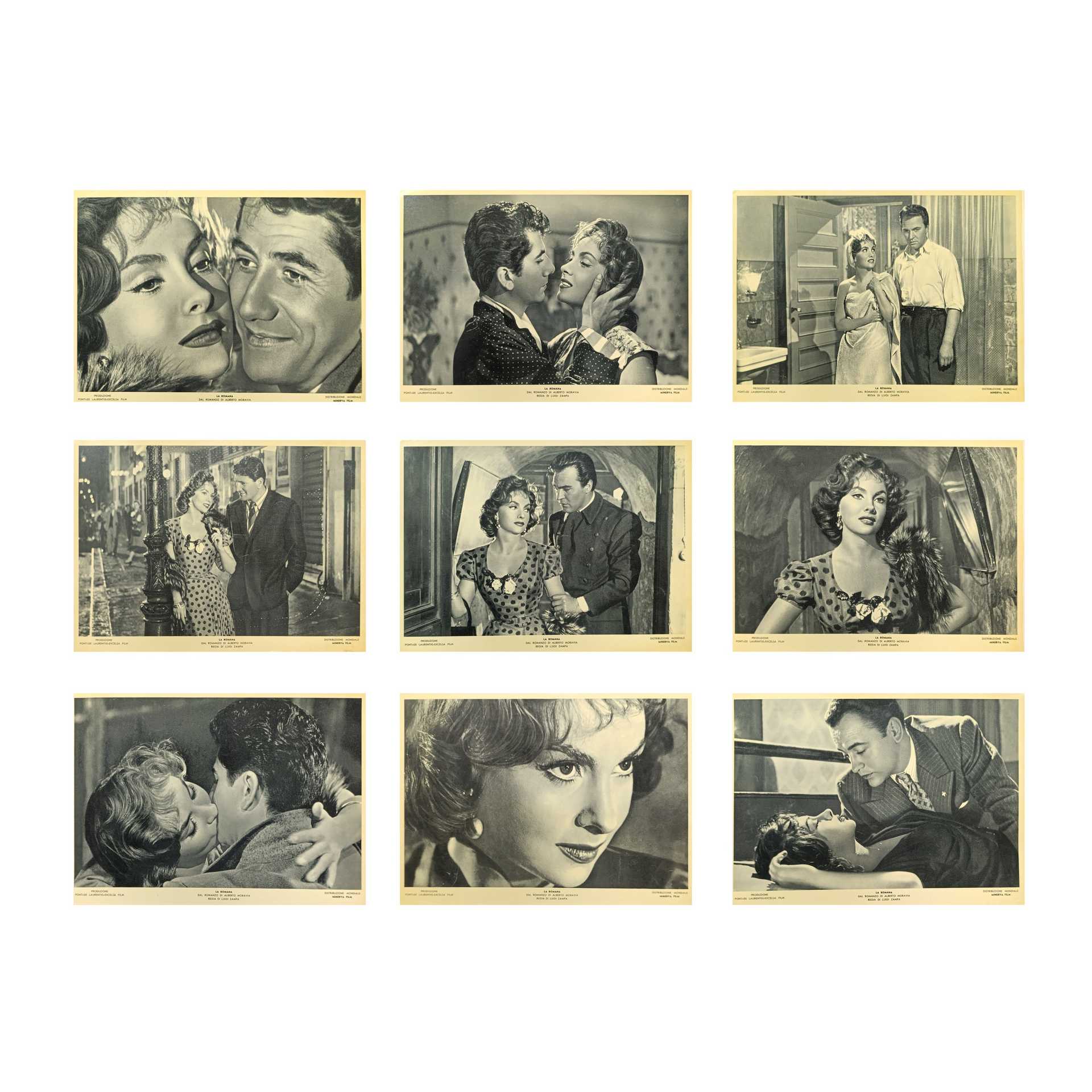 N°9 Foto di scena del film '' La Romana'', 1950 h cm 24X30 (cadauna) Gina Lollobrigida, Luigi Zampa. Condizioni ottime, mai affisse.Gina Lollobrigida, Luigi Zampa. Condizioni ottime, mai affisse.