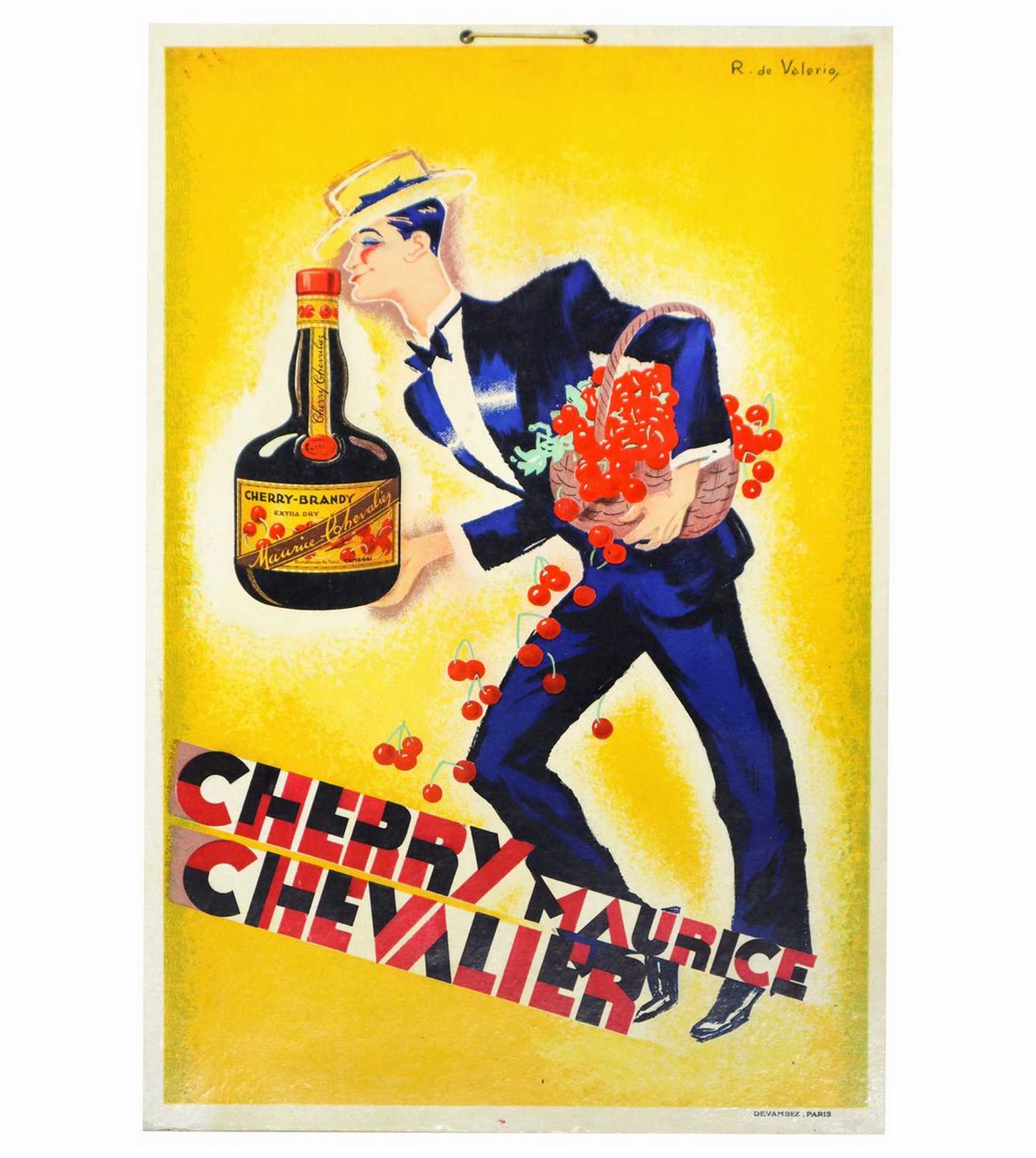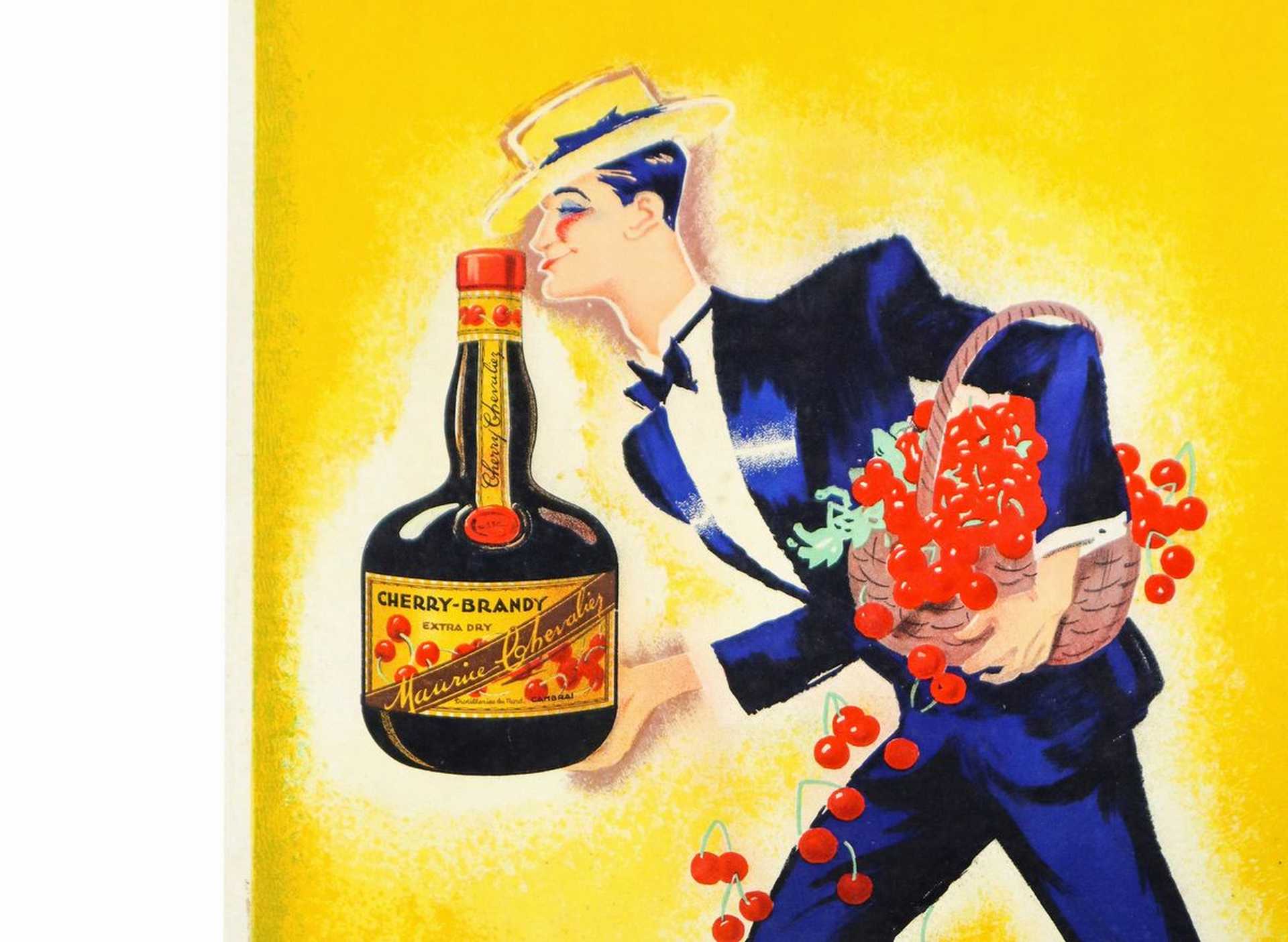 Roger De Valerio - Cartonato promozionale per il brandy Cherry Maurice Chevalier, 1935 cm 42x27 Presenti normali segni del tempoPresenti normali segni del tempo