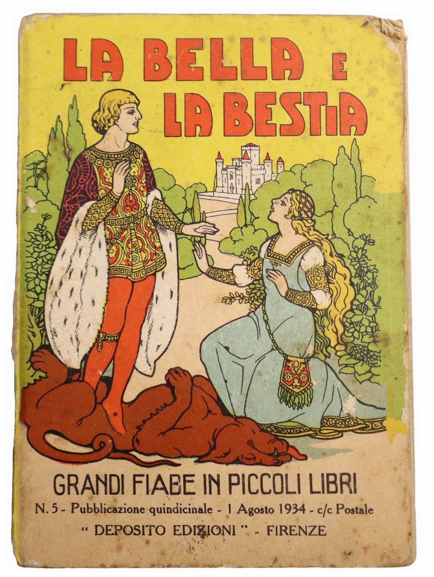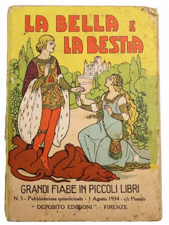 La Bella e la Bestia, 1934 cm 12 5° libro della serie ''Grandi fiabe in piccoli libri'', Deposito edizioni Firenze, datato sulla copertina, normali segni d'uso5° libro della serie ''Grandi fiabe in piccoli libri'', Deposito edizioni Firenze, datato sulla copertina, normali segni d'uso