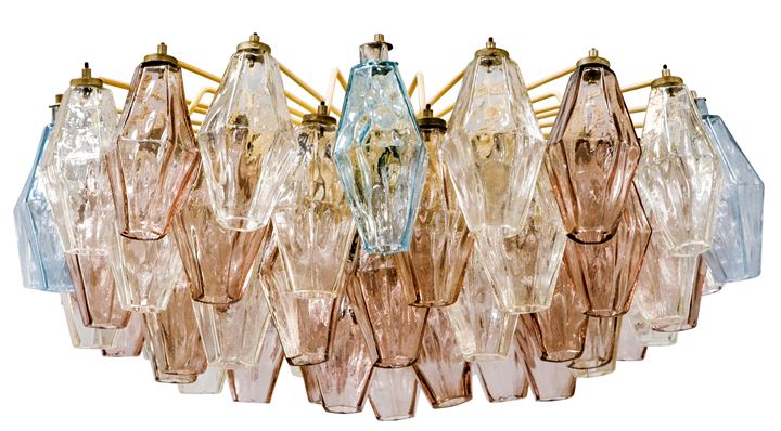 VENINI Lampada a sospensione della serie poliedri in vetro soffiato in due...