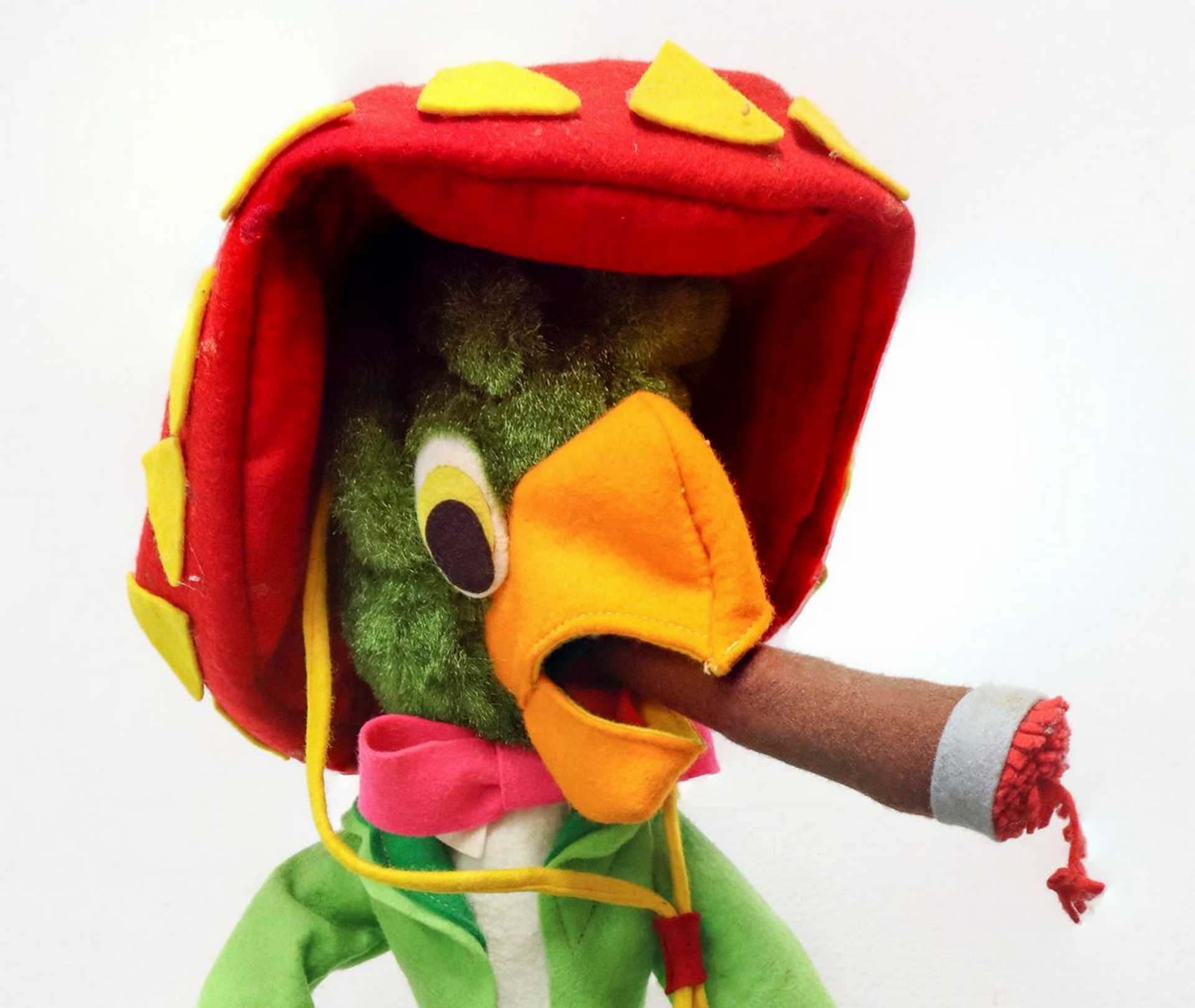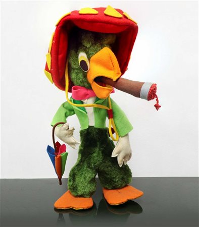 Josè Carioca in pannolenci, 1952 h cm 41 Dal lungometraggio animato "I Tres Caballeros", Walt Disney, presenti normali segni d'usoDal lungometraggio animato "I Tres Caballeros", Walt Disney, presenti normali segni d'uso