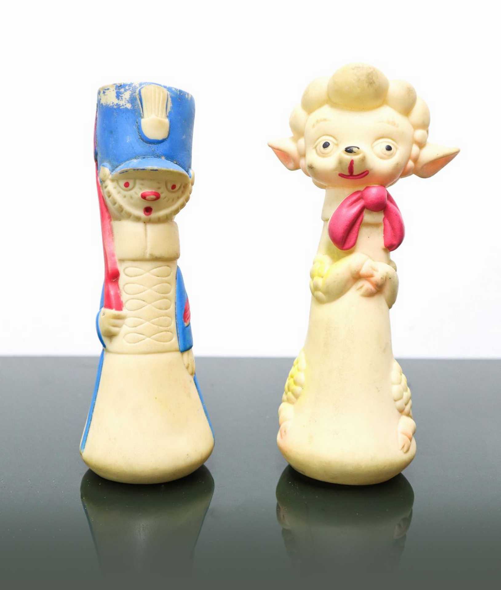 Edward Mobley Co, UK. - Pecorella e Soldatino, 1958 h cm 20 Coppia di pupazzi in gomma cigolanti. Presenti cadute di colore