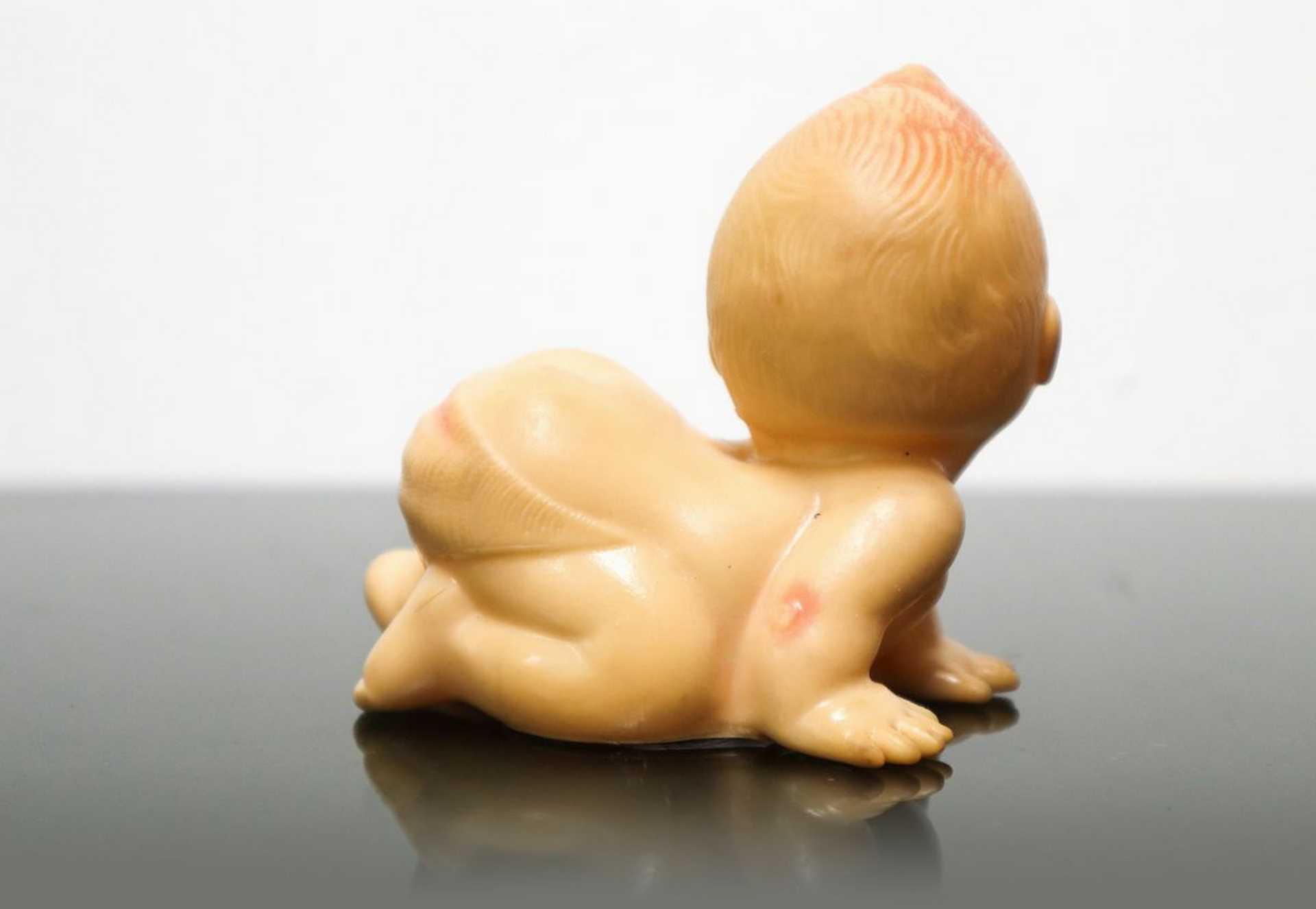 Ledra Gomma/ Ledra Plastic - Neonato che gattona, 1950 h cm 9 Pupazzo in gomma Made in Italy. Sonaglio mancante.Pupazzo in gomma Made in Italy. Sonaglio mancante.