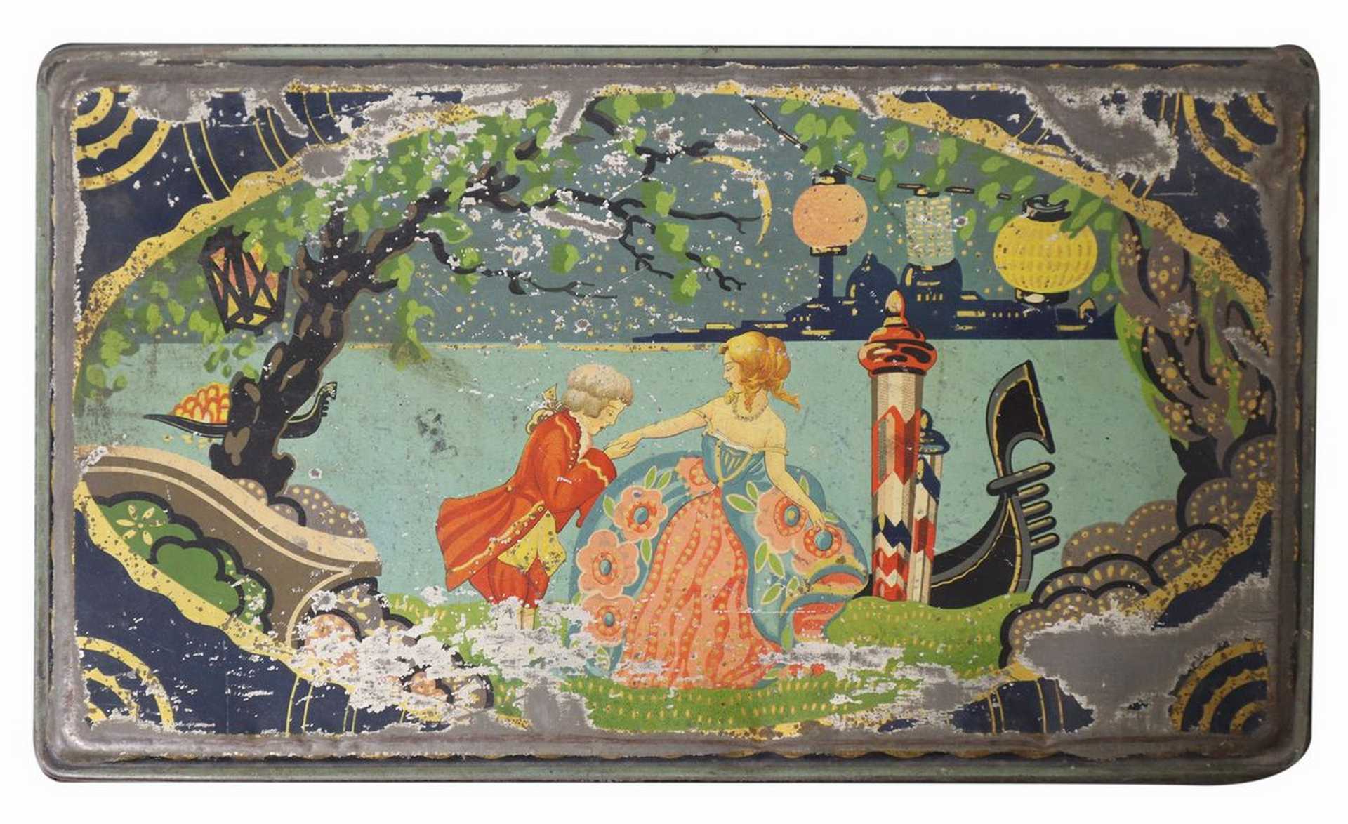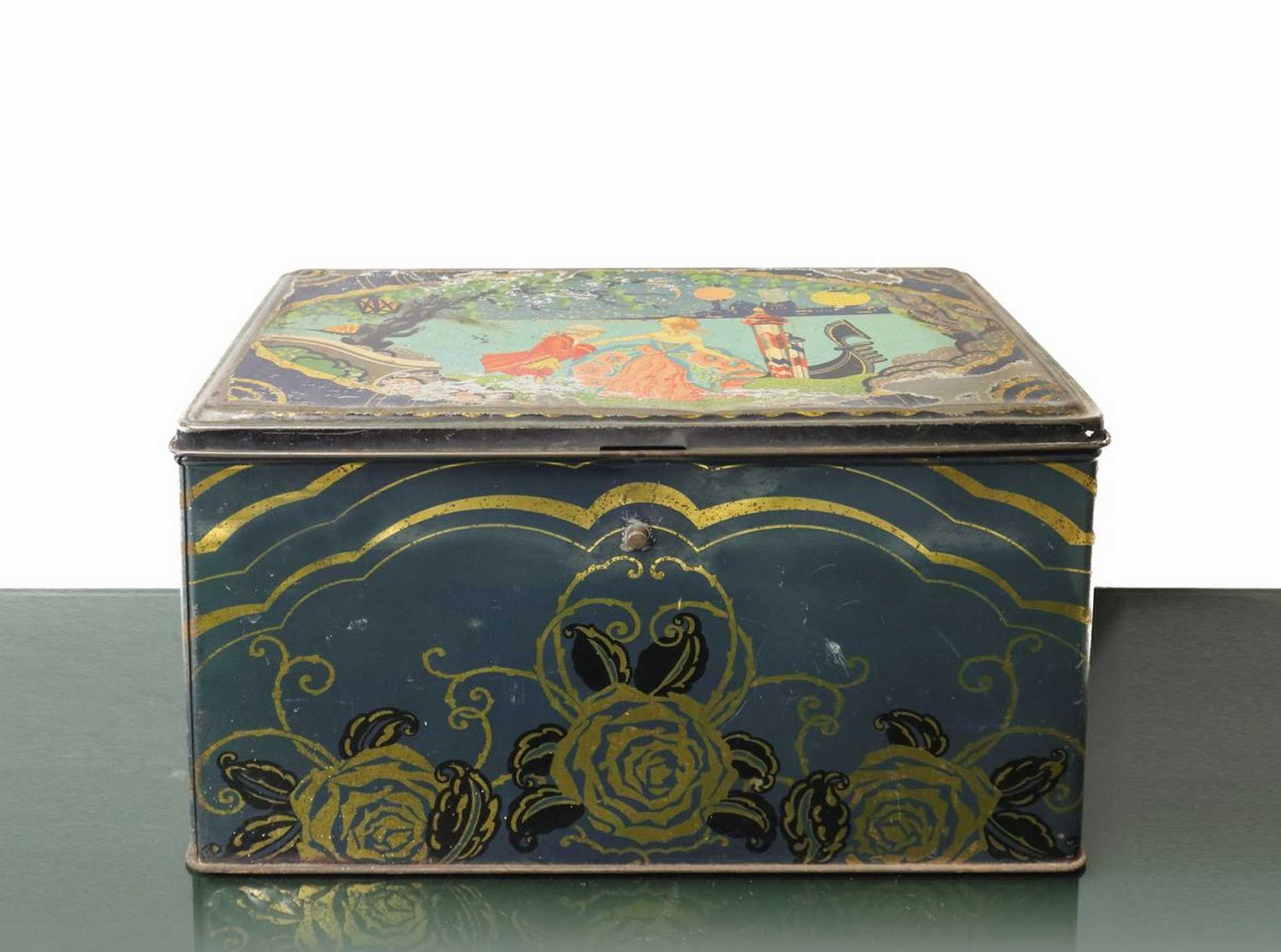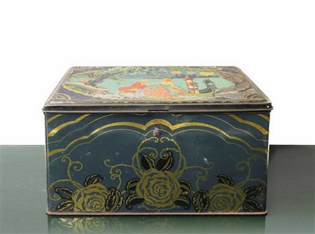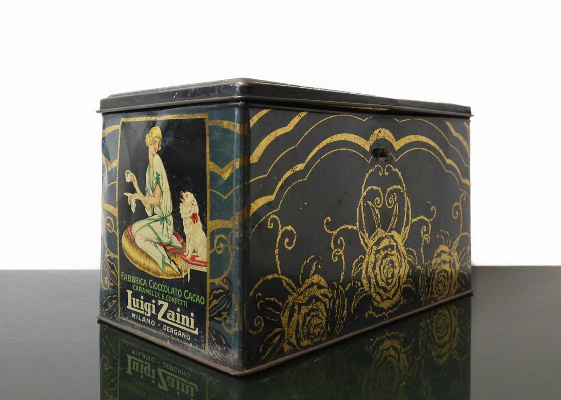 Luigi Zaini - Scatola in latta, 1930, Deco h cm 22x35x20 Fabbrica cioccolato, cacao, caramelle e confetti. Presenti normali segni d'usoFabbrica cioccolato, cacao, caramelle e confetti. Presenti normali segni d'uso
