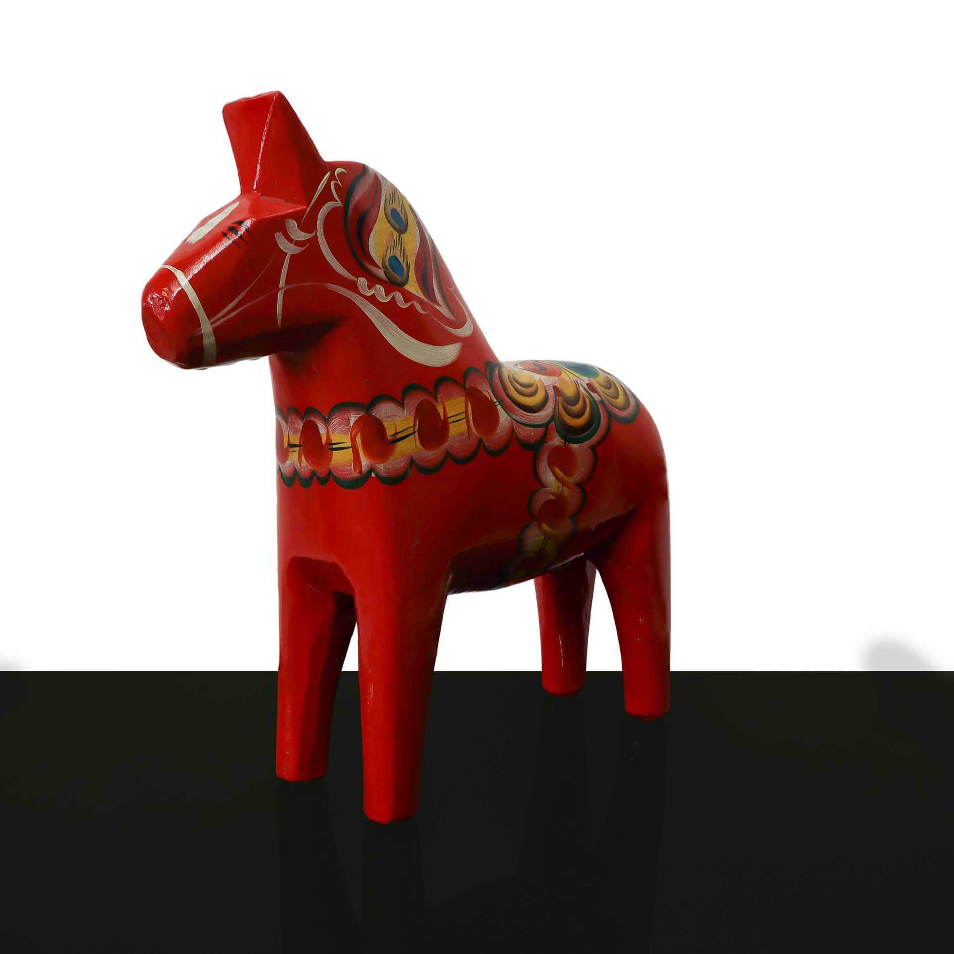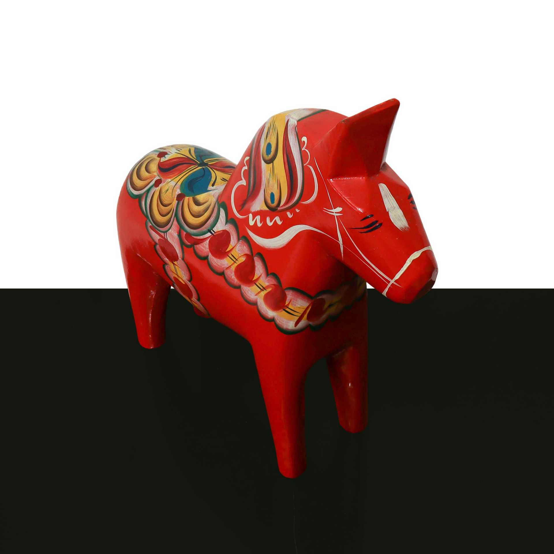 Nils Olsson Sveden - Cavallo vintage in legno rosso laccato e dipinto, Sweden 1960s