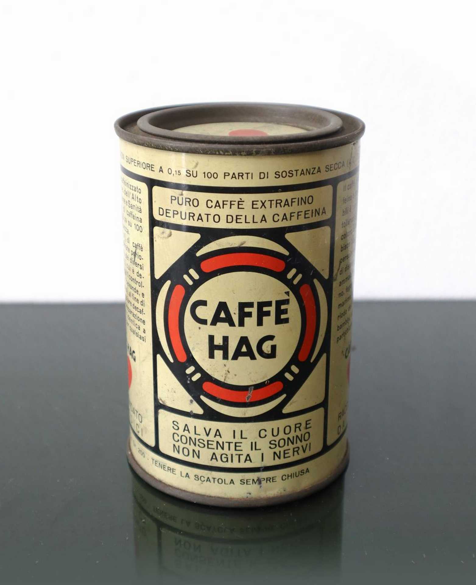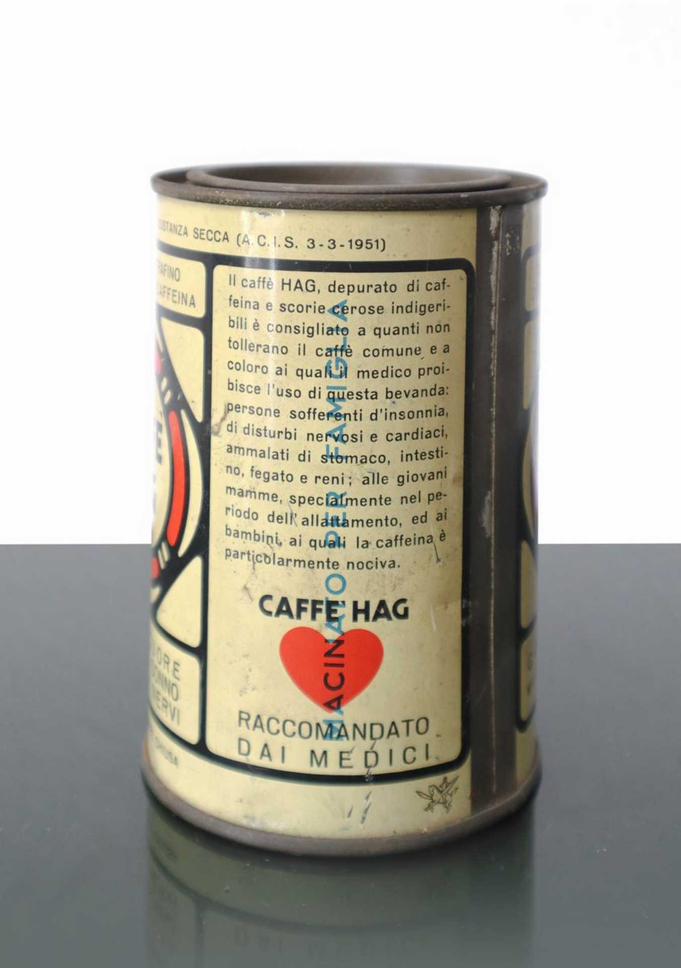 Caffè Hag e Paulista Lavazza - Coppia di scatole in latta scatola Hag h cm 13, scatola Lavazza h cm 17 Presenti normali segni del tempoPresenti normali segni del tempo