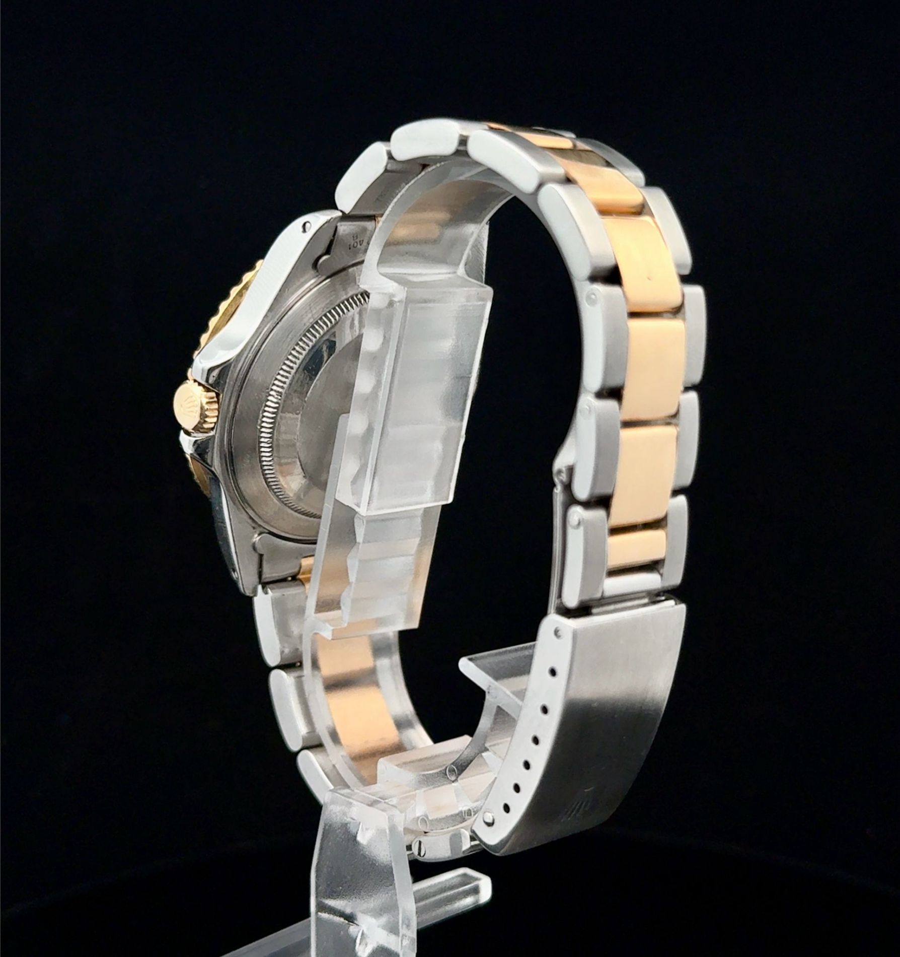 Marca Rolex Modello (Orologio) GMT-Master II Numero di referenza 16713 Carica Automatico Materiale della cassa Oro/Acciaio Materiale cinturino Oro/acciaio Anni 1997 documenti originali Rolex, no box la scatola è utilizzata solo per foto non in vendita Materiale della cassa Oro/Acciaio Diametro 40 mm Impermeabile 10 ATM Materiale lunetta Oro giallo Vetro Vetro zaffiro Numeri sul quadrante Senza numeri Cinturino Materiale cinturino Oro/acciaio Colore cinturino Oro/acciaio Chiusura Déployante Funzioni Data, GMT