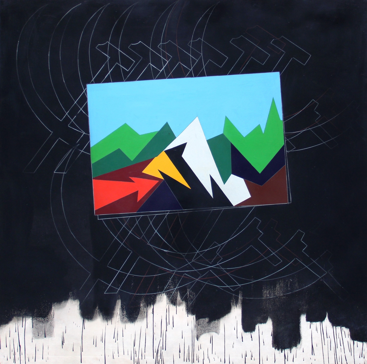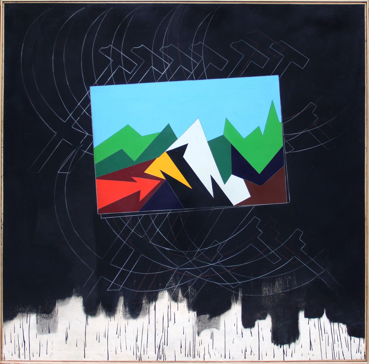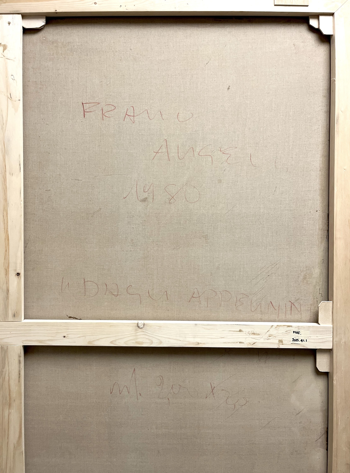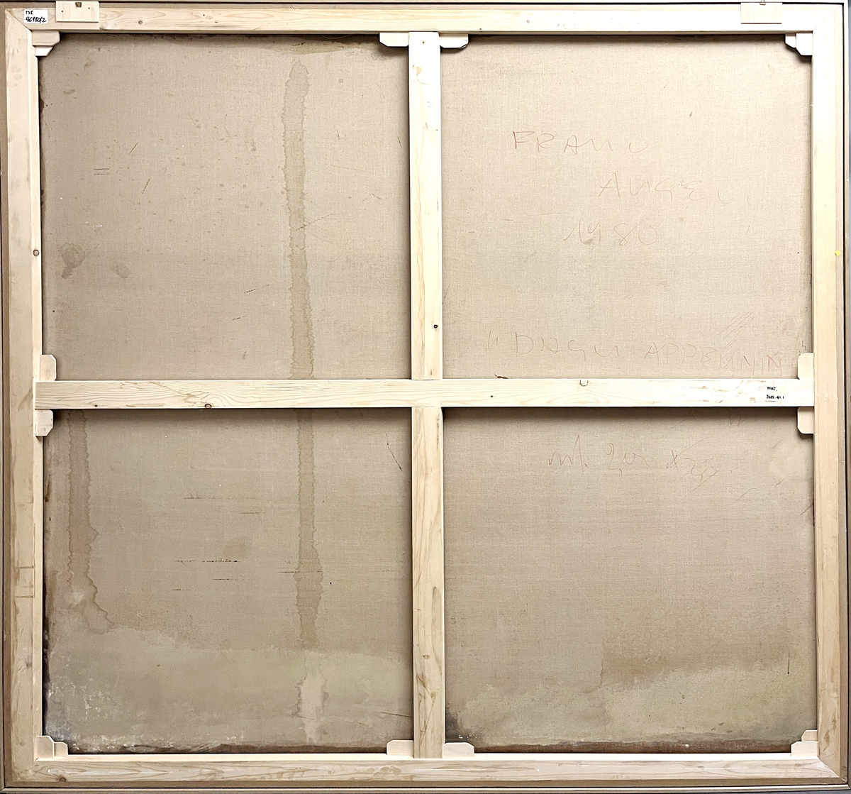 Firma, data, titolo, dimensioni "Franco Angeli, 1980, Dagli Appennini alle Ande, cm 200x200";