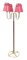 Lampada da terra con base in filo di ottone lucido a forma di quadrifoglio, stelo ricoperto in pelle e ottone. Diffusori in tessuto.