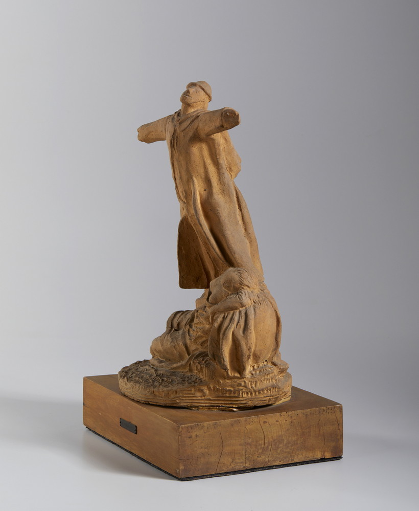 La scultura è realizzata in terracotta da stampo, tecnica ampiamente utilizzata da Martini negli anni Venti e Trenta che prevede l’uso di matrici in gesso per la creazione di più esemplari. Tale realizzazione non mira alla semplice riproducibilità, ma permette all’artista di modulare la resa con sottili variazioni nella superficie e nelle patinature, conferendo unicità a ciascun esemplare. A differenza della scultura modellata a mano, dove il gesto è direttamente percepibile nella materia, la terracotta da stampo presenta superfici più compatte