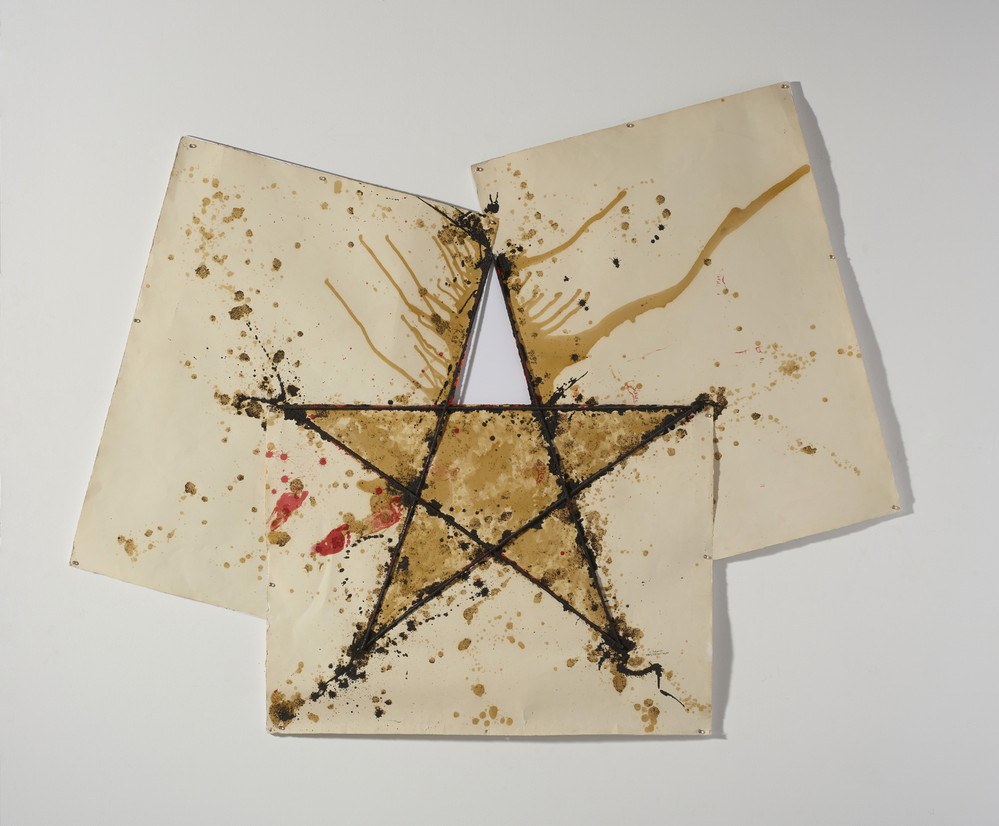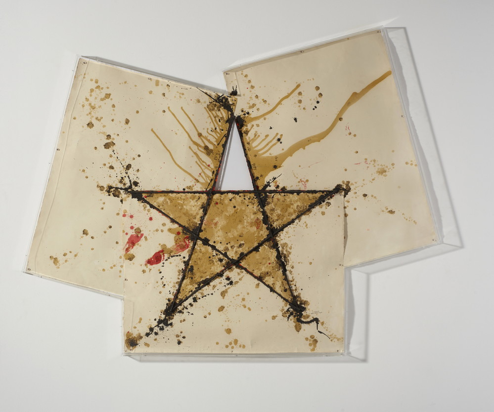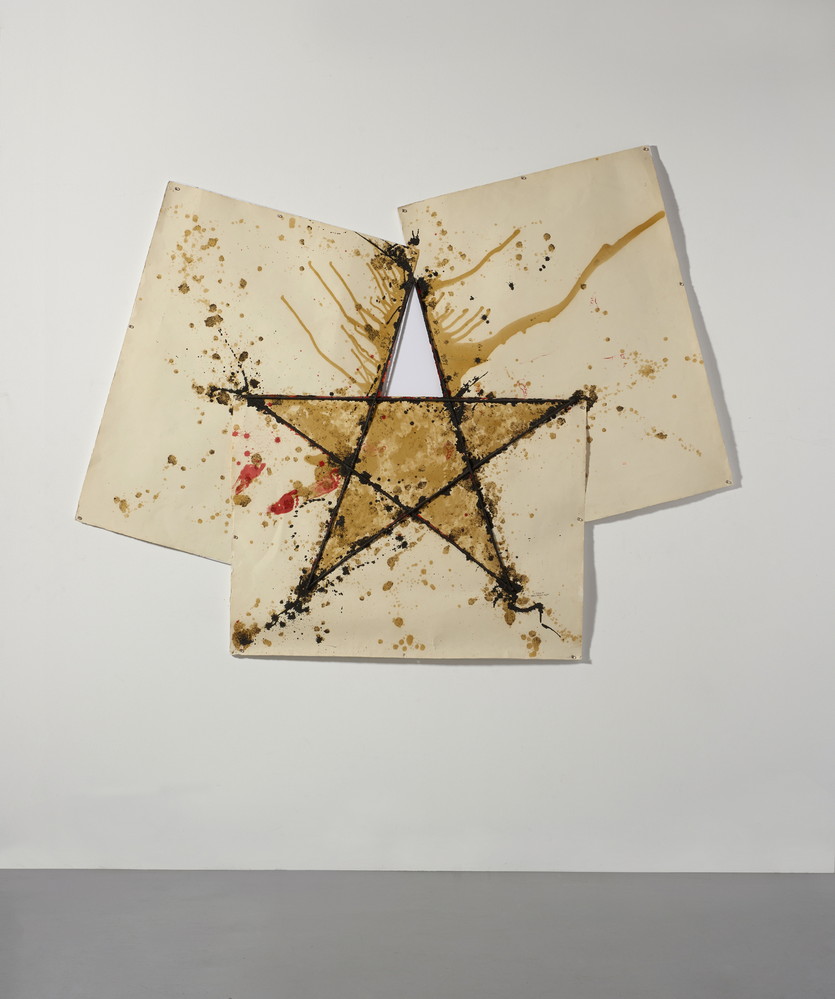 ZORIO GILBERTO (n. 1944) STELLA ,1984-87. Tecnica mista e alluminio su carta. Cm 200,00 x 160,00. firma, data e iscrizione “g. Zorio, 87, Porto Vecchio, agosto”.