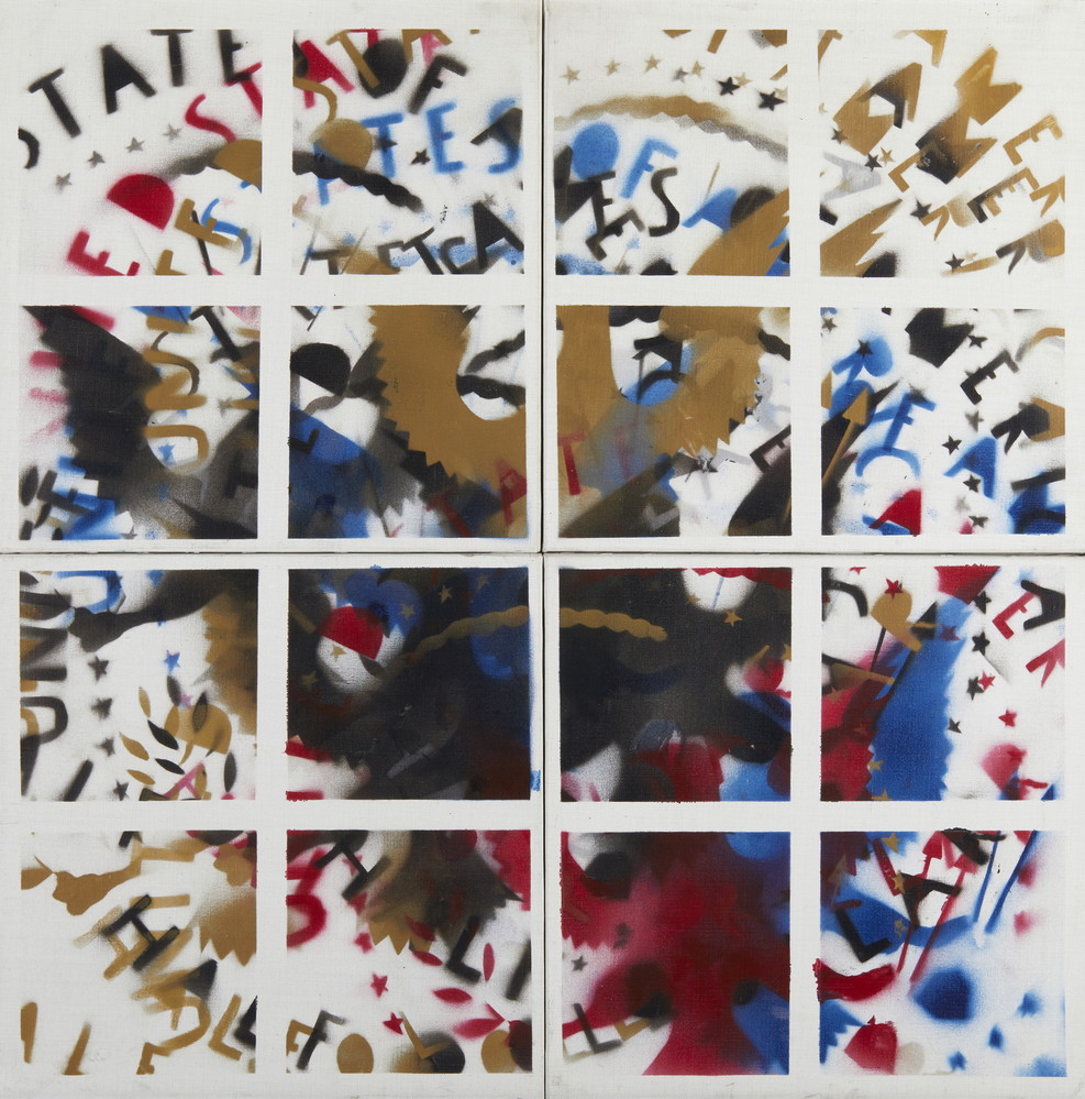ANGELI FRANCO (1935 - 1988) SIMBOLI RIVISITATI. 1984. smalto a spruzzo su tela. Cm 70,00 x 70,00. sul retro: titolo, firma e anno.