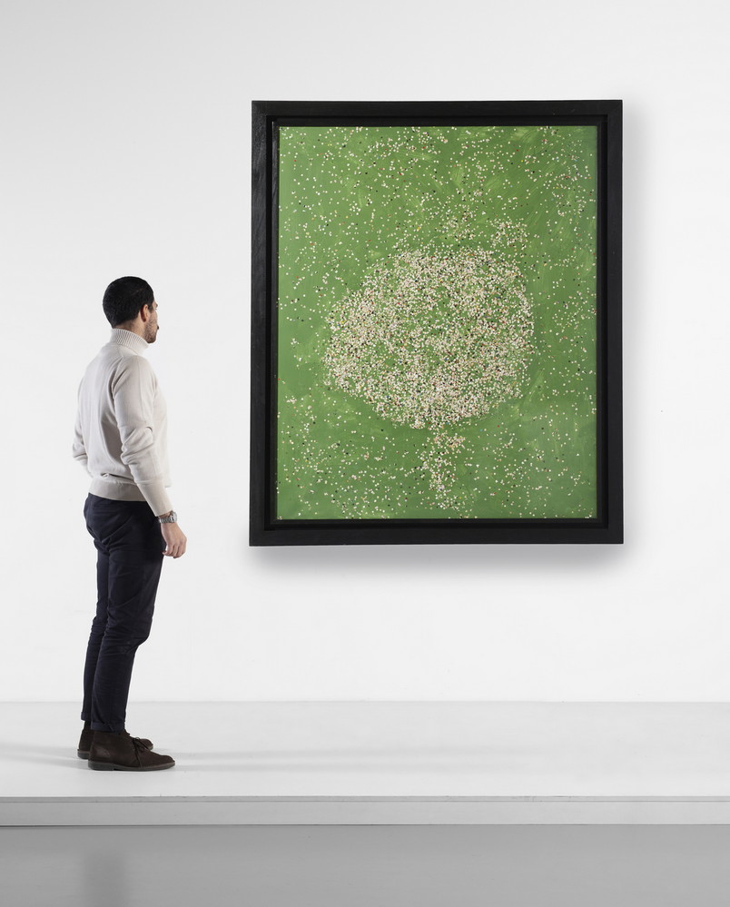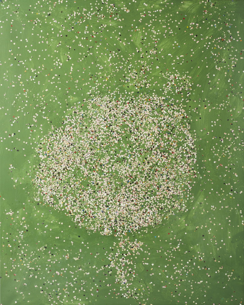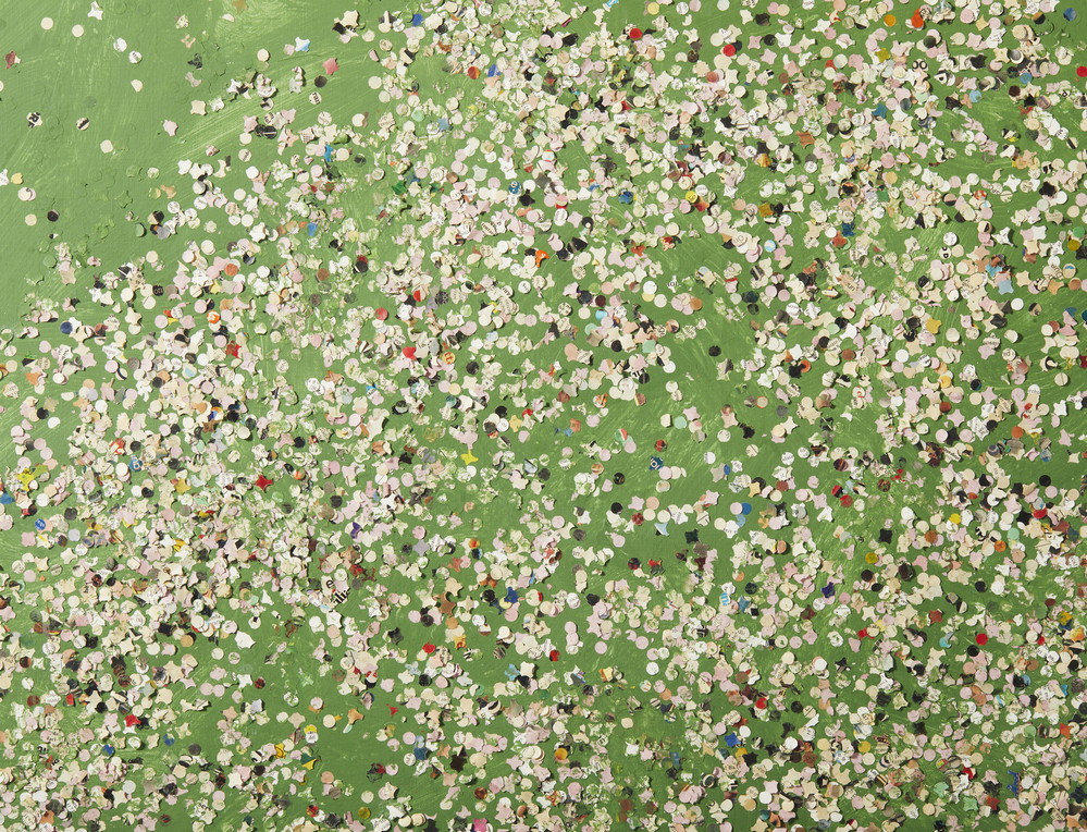 FESTA TANO (1938 - 1988) CORIANDOLI. 1986. Acrilico, colla e coriandoli su tela. Cm 130,00 x 160,00. sul retro: firma e data