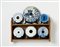 Opera composto da una mensola, sei lame circolari dipinte e sei piedistalli.