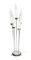Lampada da terra in acciaio cromato e diffusori in vetro lattimo e trasparente.