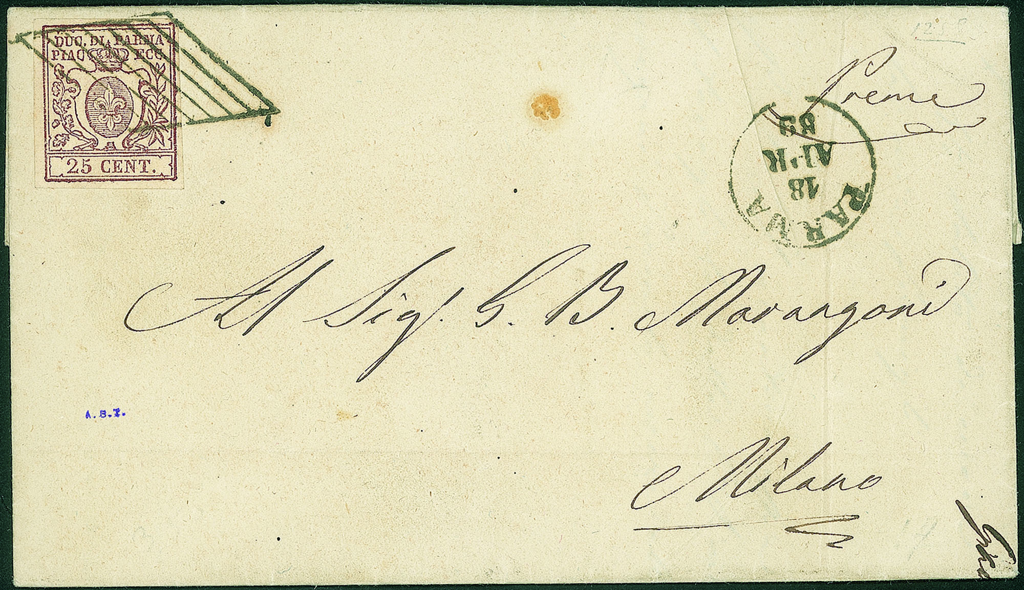 Antichi Stati Italiani - Parma - Lettera da Parma18 apr. 59 per Milano con 25 cent bruno lilla (10)