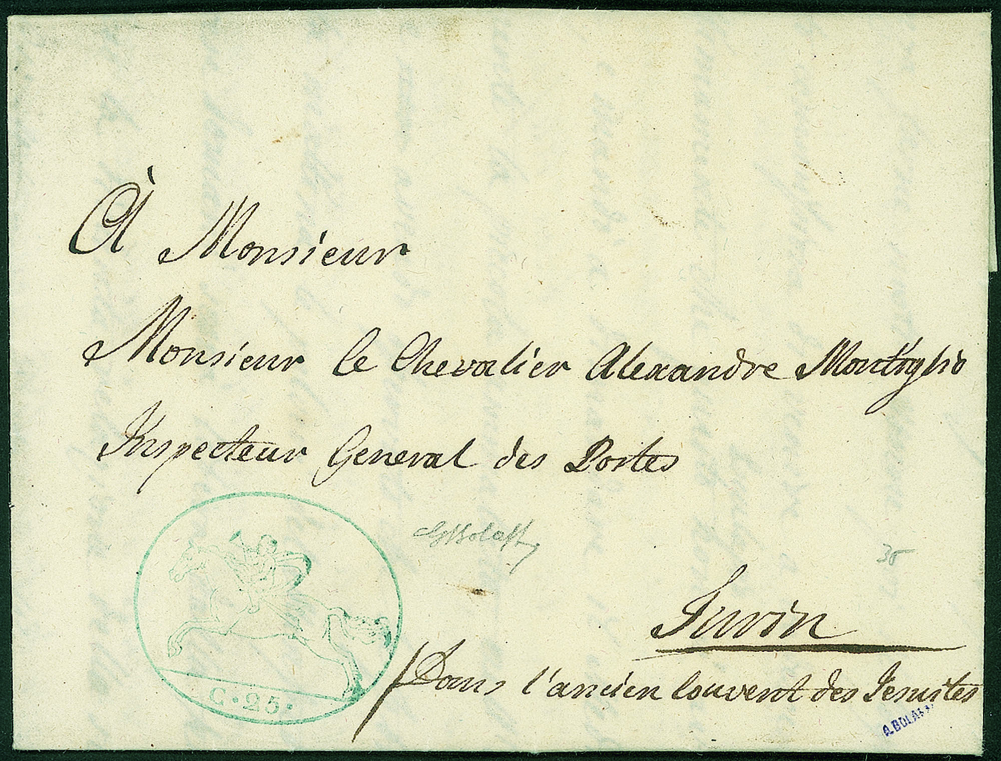 Antichi Stati Italiani - Sardegna - Cavallino stampa in azzurro c. 25 fresco e senza piegaUsato da Canale 20 giugno 1819 per Torino - G. Bolaffi