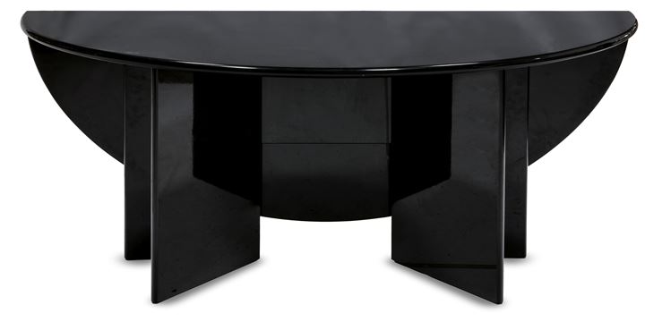 Tavolo pieghevole che si trasforma in console, in legno laccato.