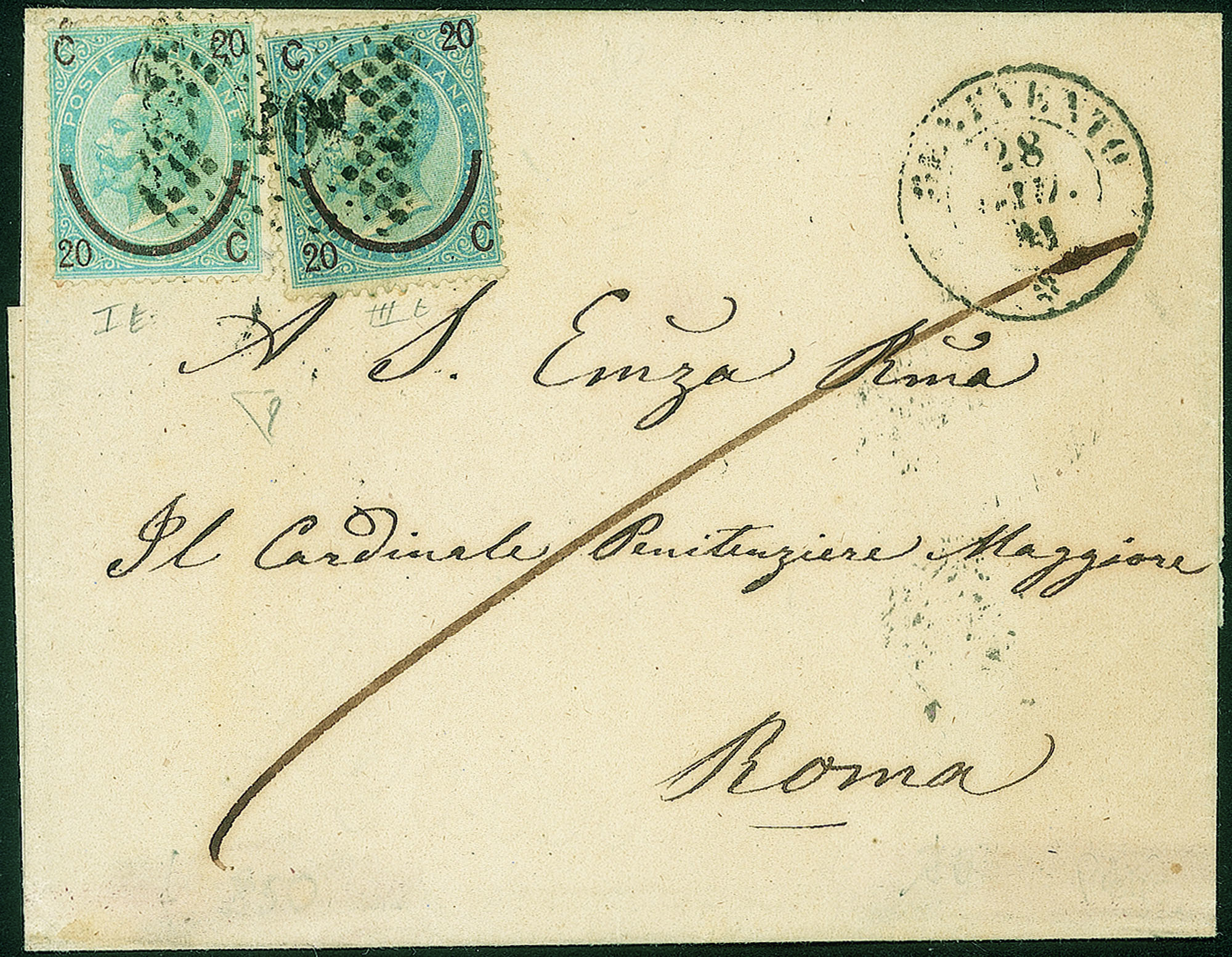 Regno - Vittorio Emanuele II - Lettera con valori gemelli ferro di cavallo + III tipo