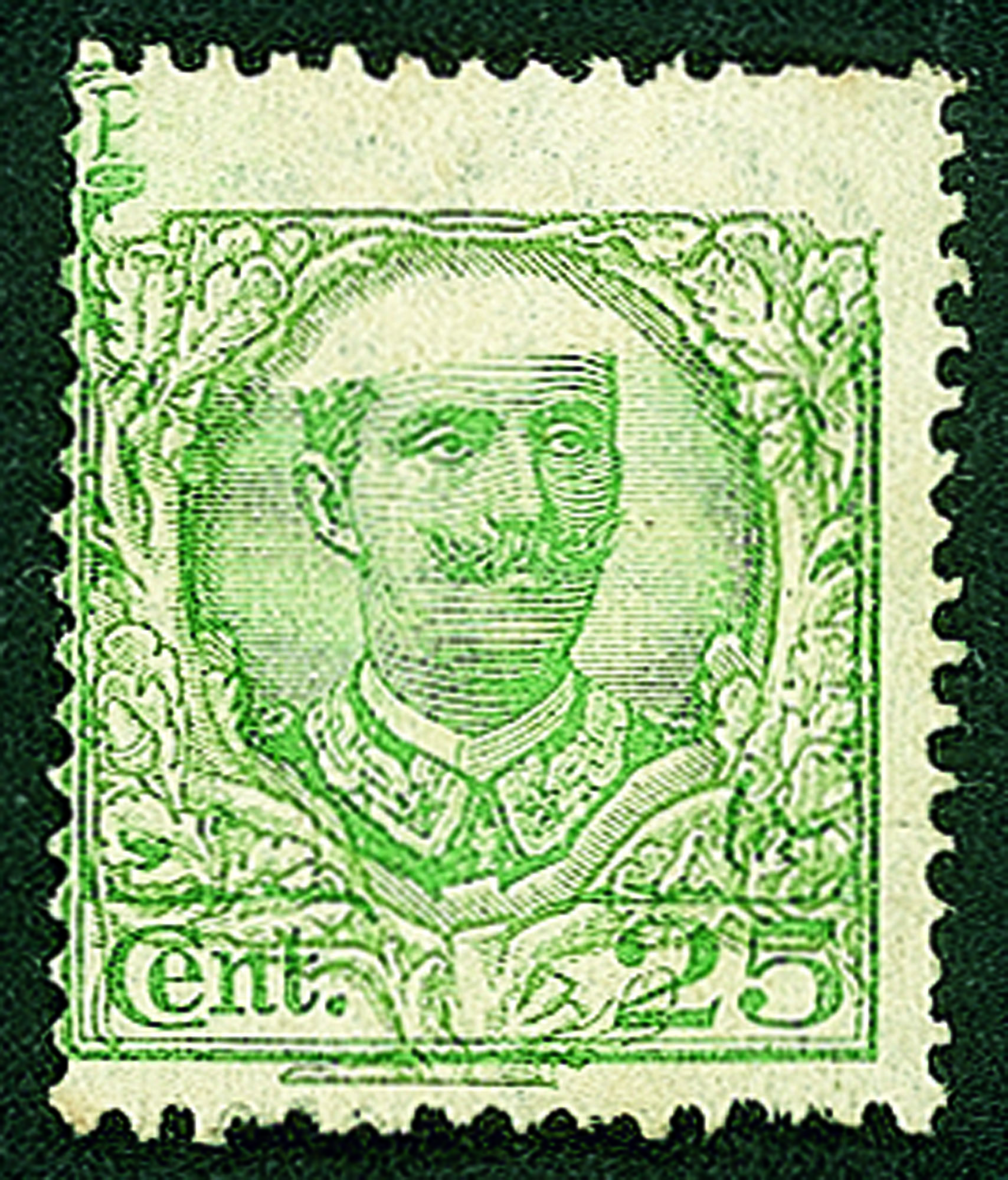 Regno - Vittorio Emanuele III - 1926 - 25 cent Floreale verde e verde olivaSenza il tassello Poste Italiane e senza parte dell'effige (200ce) nuovo con minima traccia di linguella - raro