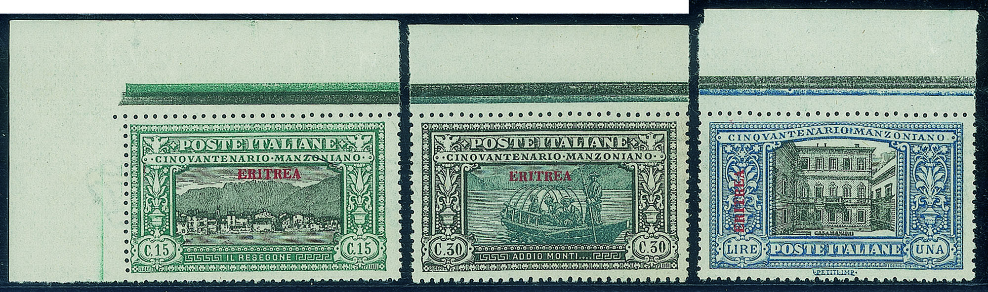 Colonie - Eritrea - 1924 - Manzoni (71/76)Serie completa bordo foglio e 15 cent angolo di foglio - gomma integra