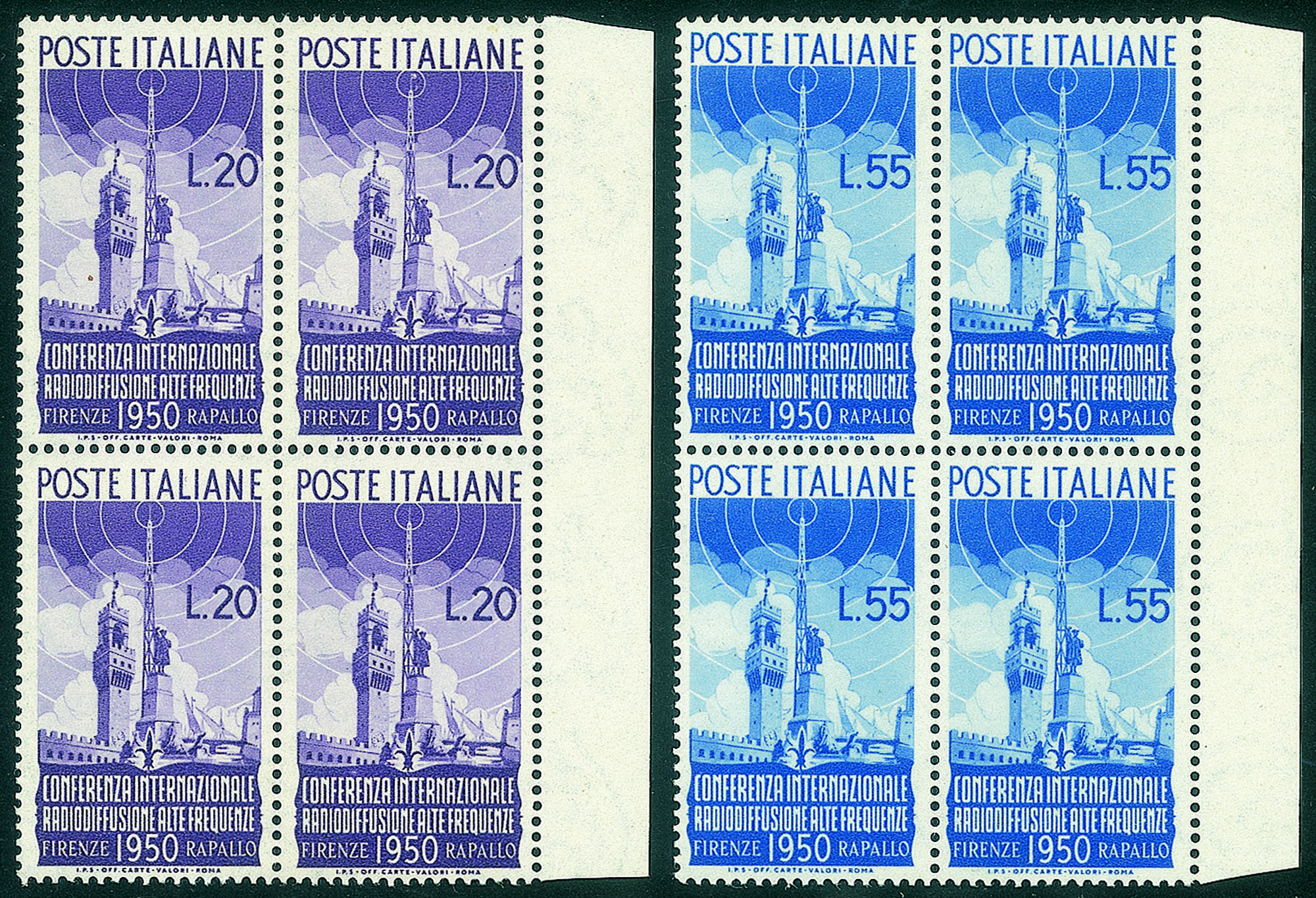 Repubblica - 1950 - Radiodiffusione (623/624)Serie completa in quartina bordo foglio gomma integra - ottima centratura