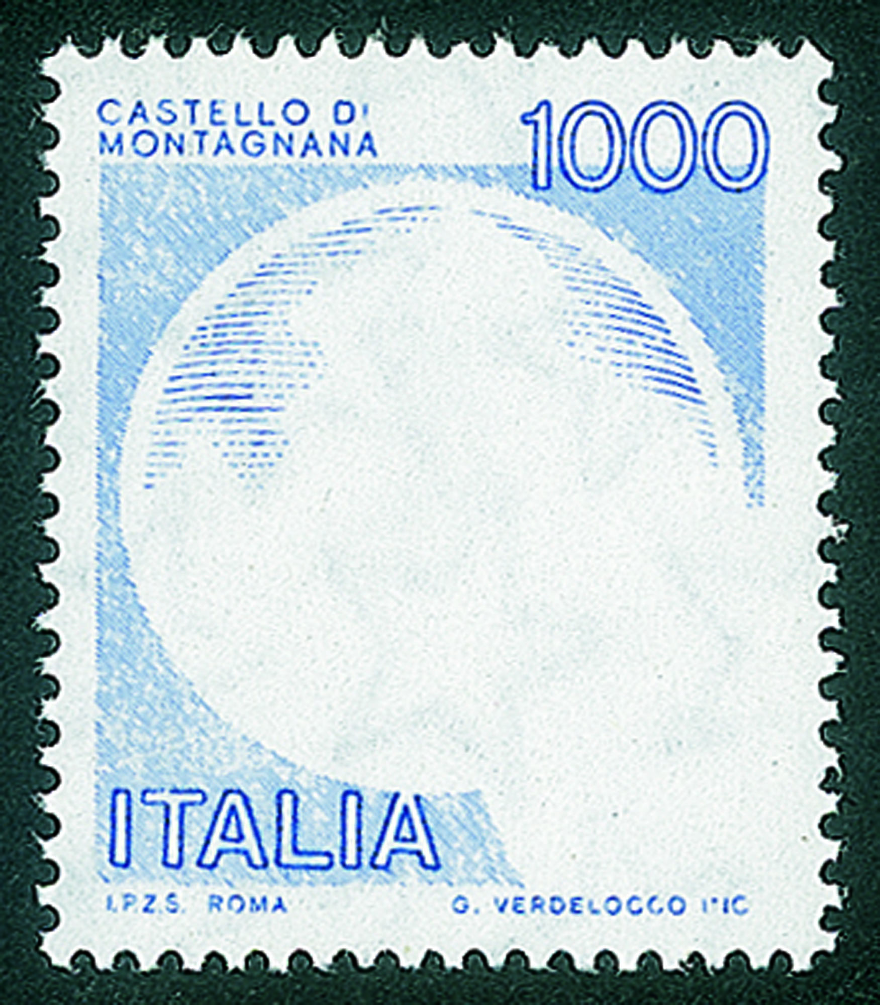 Repubblica - 1980/1992 - 1000 lire azzurro Castelli - francobollo naturale privo della stampa del bruno del verde e del nero (1527 var.)
