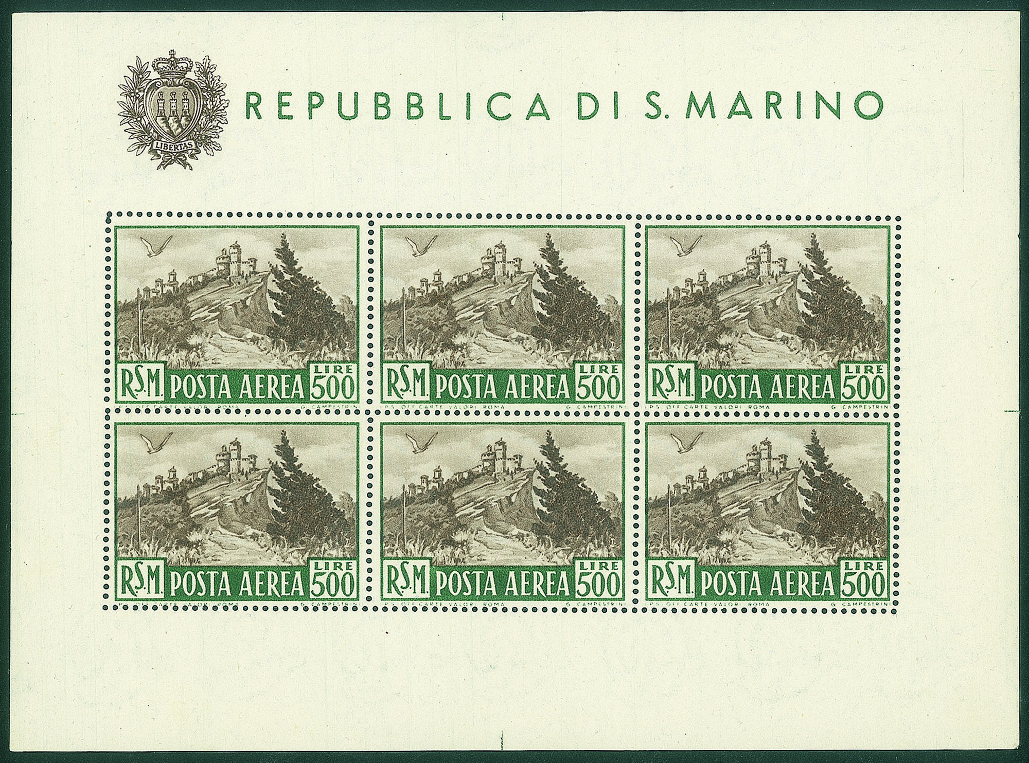 San Marino - 1951 - Foglietto Veduta (12)Gomma integra - molto bello e fresco
