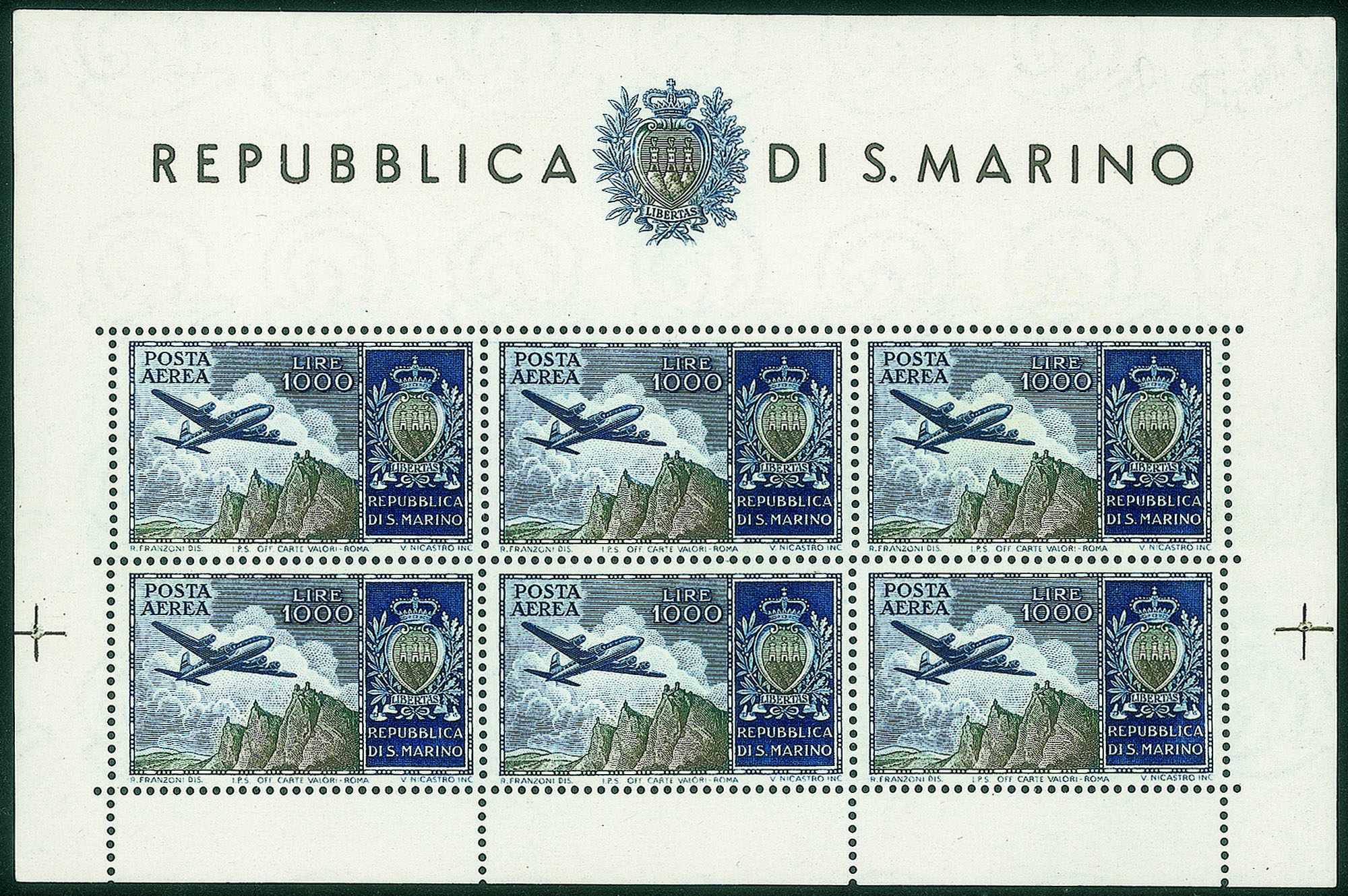 San Marino - 1954 - Foglietto Veduta e Stemma (16)