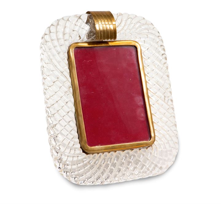 BAROVIER & TOSO Portaritratti in vetro a torchon, montatura in ottone. Prod....
