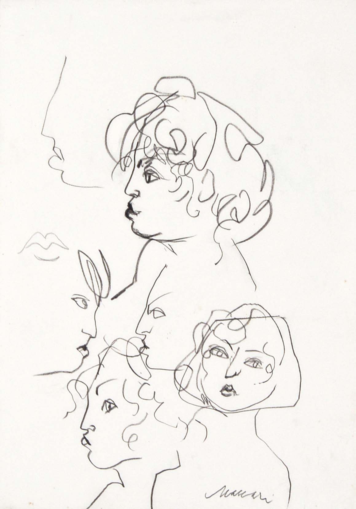 MACCARI MINO Siena 1898 - Roma 1989 Figure disegno a matita su carta 50x35 cm firma in basso a destra
